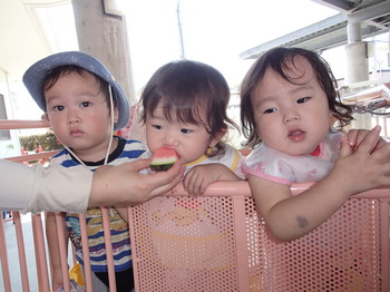 連携園である星岡保育園で行われたスイカ割りに参加しました。