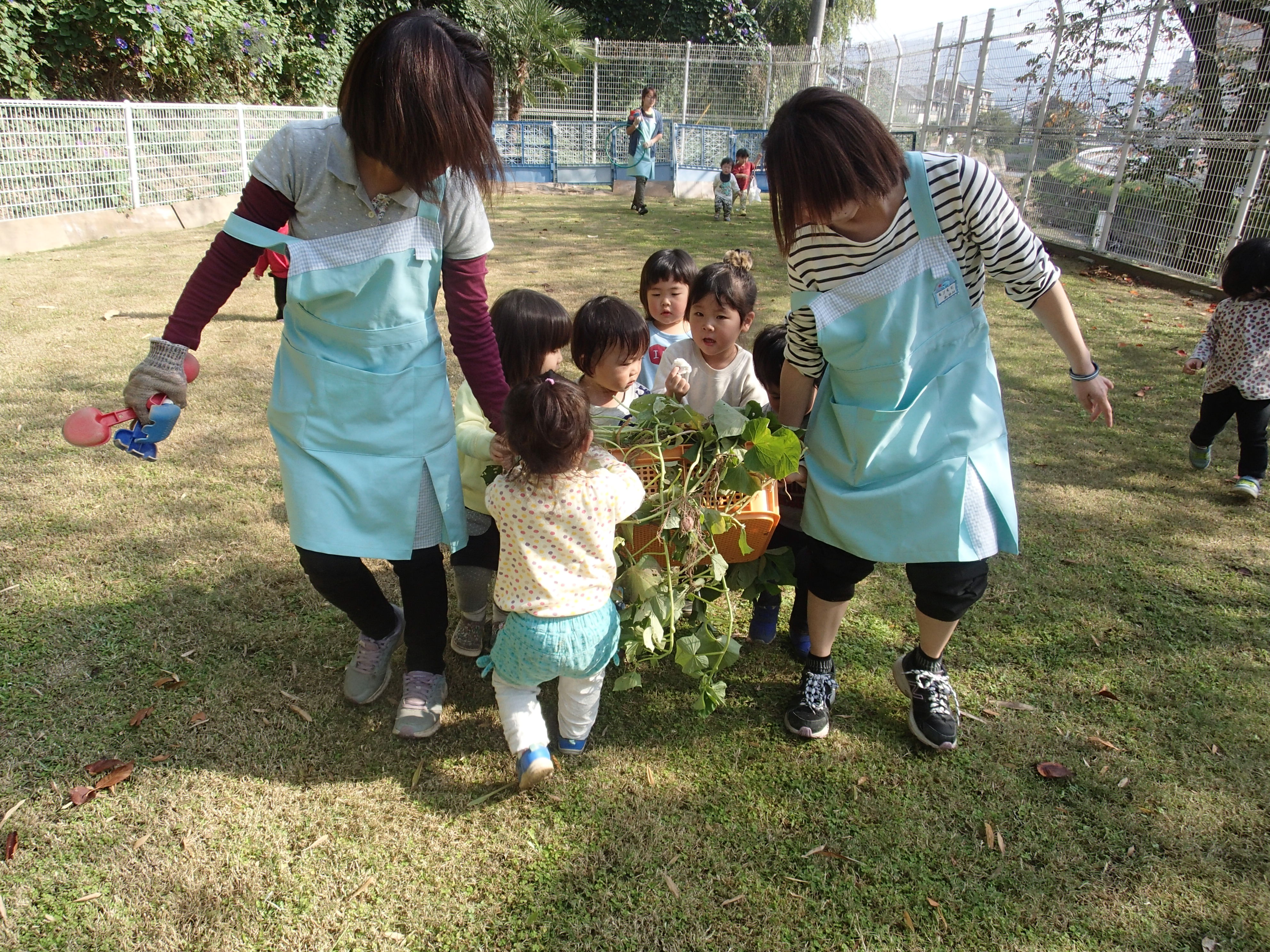 収穫したさつま芋を「おいも!おいも!」と言いながら
