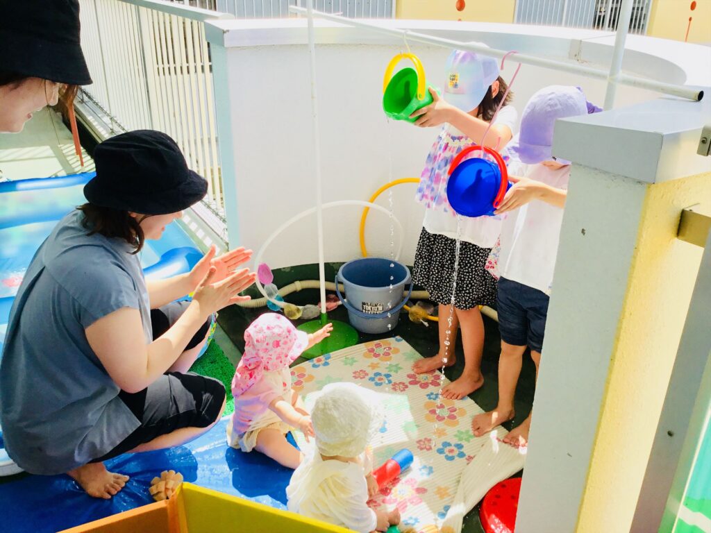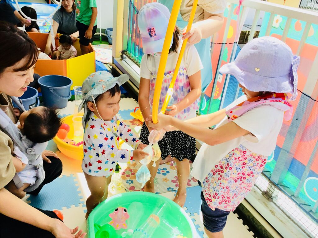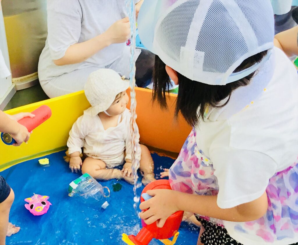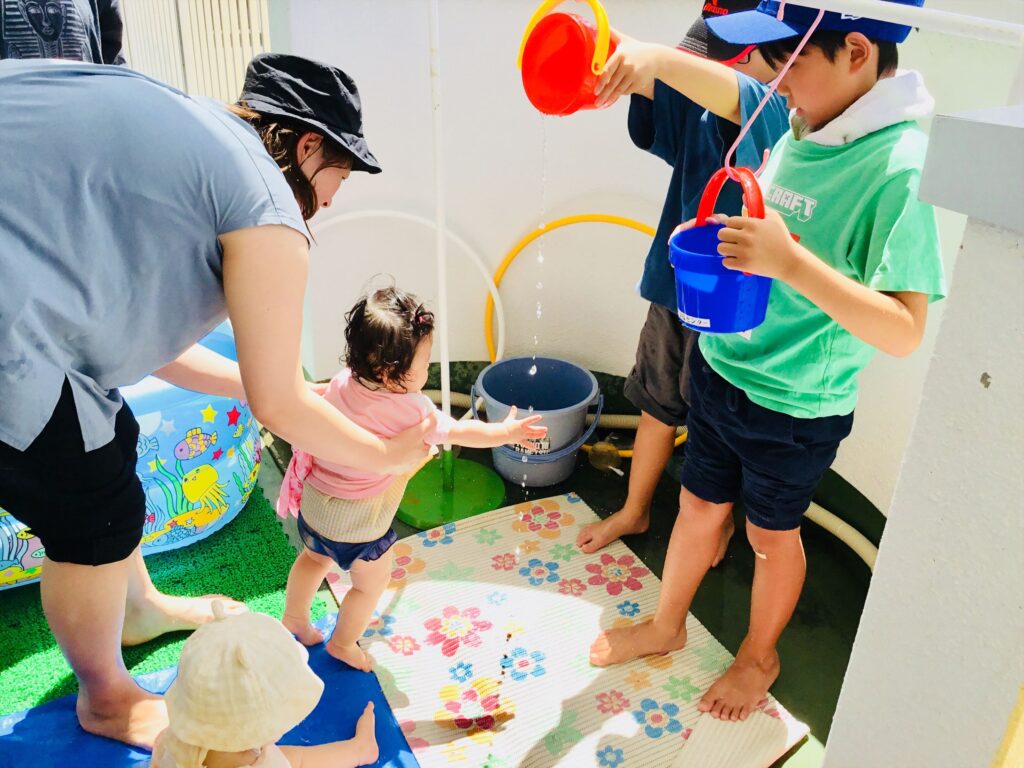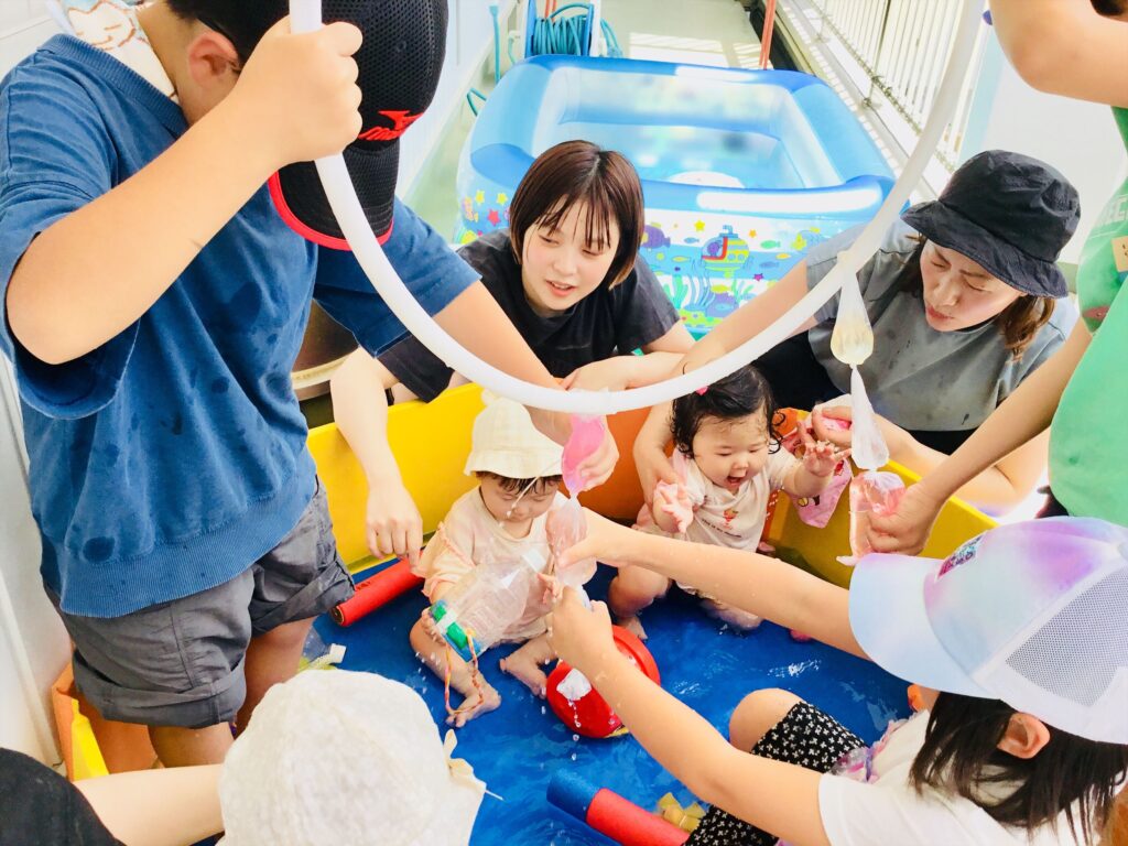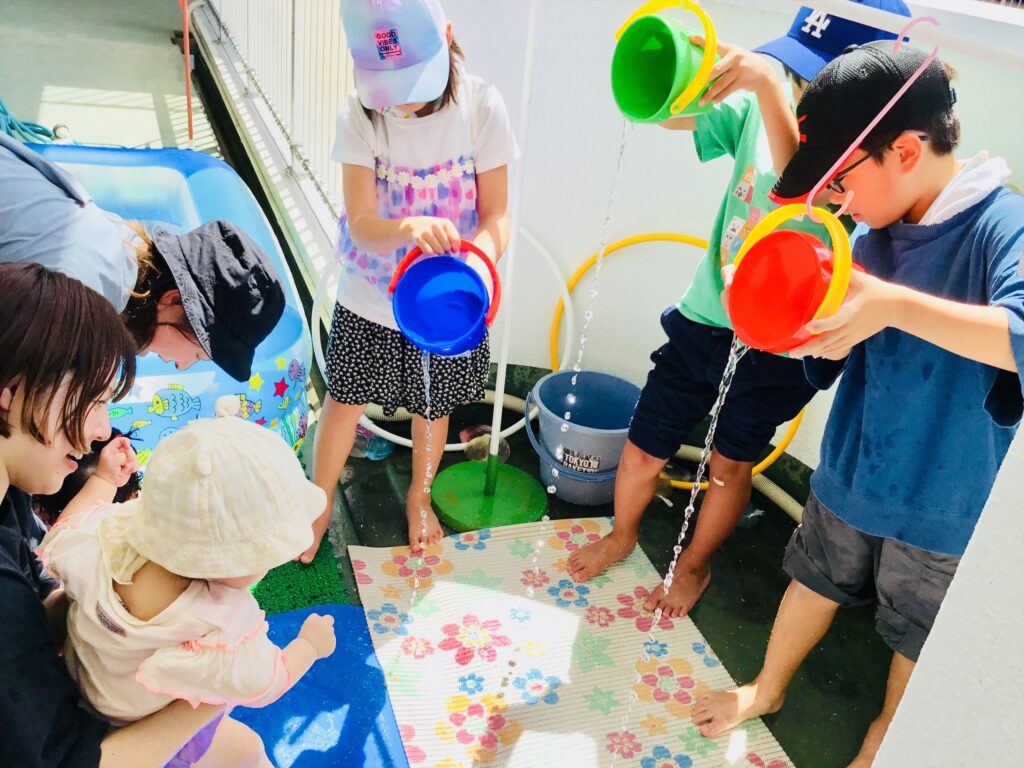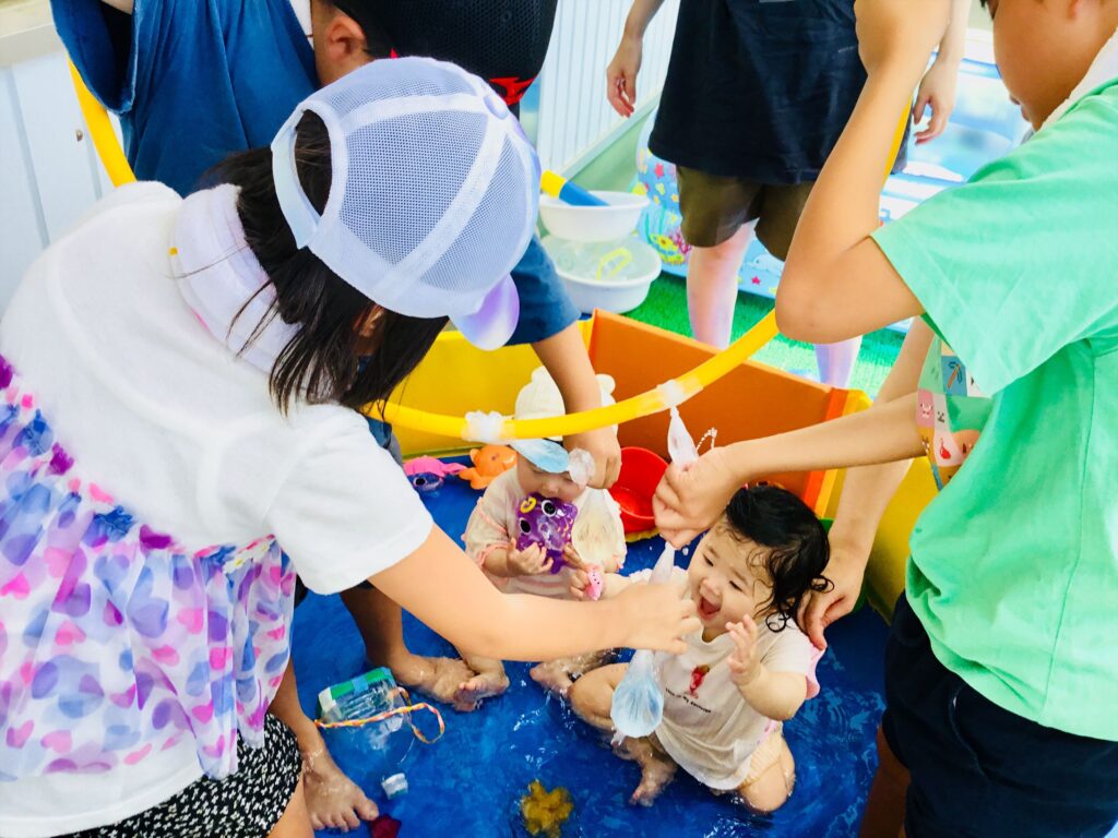 小学生が大活躍の水遊び☆異年齢の交流は、お互いにとって夏の思い出になると思います。