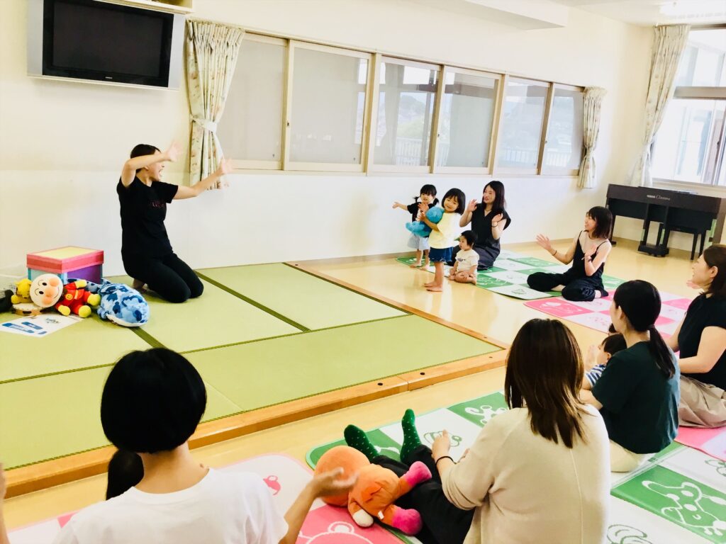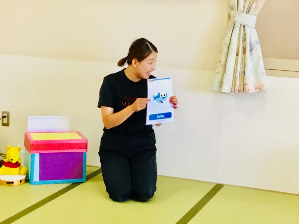 8月27日(水)、英語の音遊び♬を行いました。松山認定こども園星岡には、専任の英語講師が在籍しており、在園児は遊びの中で英語に触れる環境で生活しています。