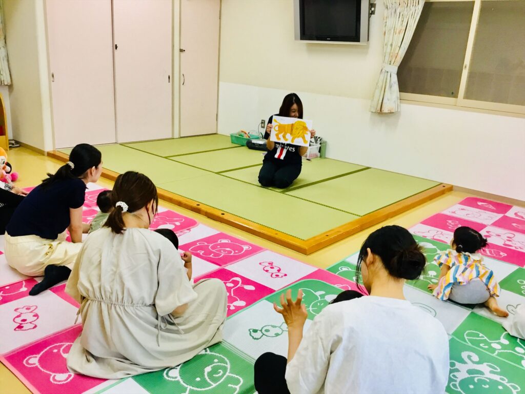 動物園に行ったら、どんな動物に会えるかな?続いて、動物絵本の読み聞かせです。動物の鳴き声を英語で表現すると・・・日本語とは違う音の表現でビックリ!!絵を見て指を指したり、動物の動きを表現をしたりする子もいました。子ども達の大好きな動物を見かけたら、英語で伝えてみるのもいいですね!