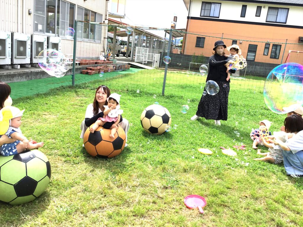 子育て支援ブログ Top 子育て支援 子育て支援ブログ お外遊びだぁいすき♬ 赤ちゃん広場の後に第2園庭芝生広場で15分程度遊びました。 第2園庭は風通しが良いので、心地良い風を感じながら元気いっぱい遊んでいます。 水や泡に触れて心地良さを感じながら過ごしています。まだ、残暑が厳しい日が続きそうです。なるべく午前中の涼しい時間に遊んで暑さ対策をして元気に過ごしましょう。親子共に、水分補給と帽子そして、お子さんの着替えと汗拭きタオルを忘れずにお持ち下さいね。少しずつ秋を感じながら過ごしていきましょう。 2025.09.19