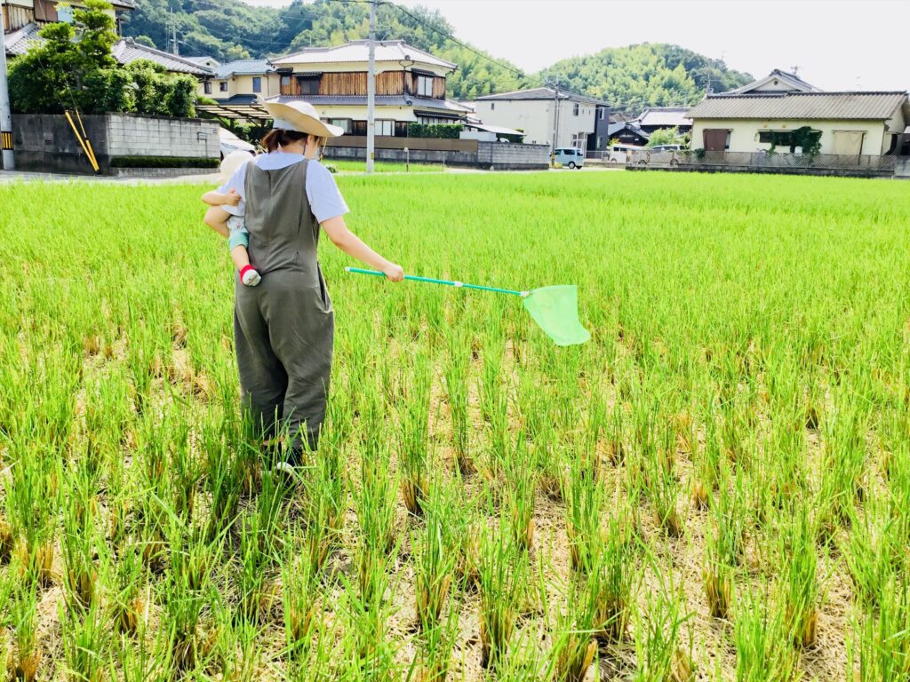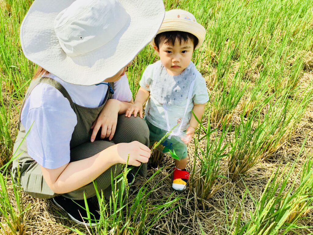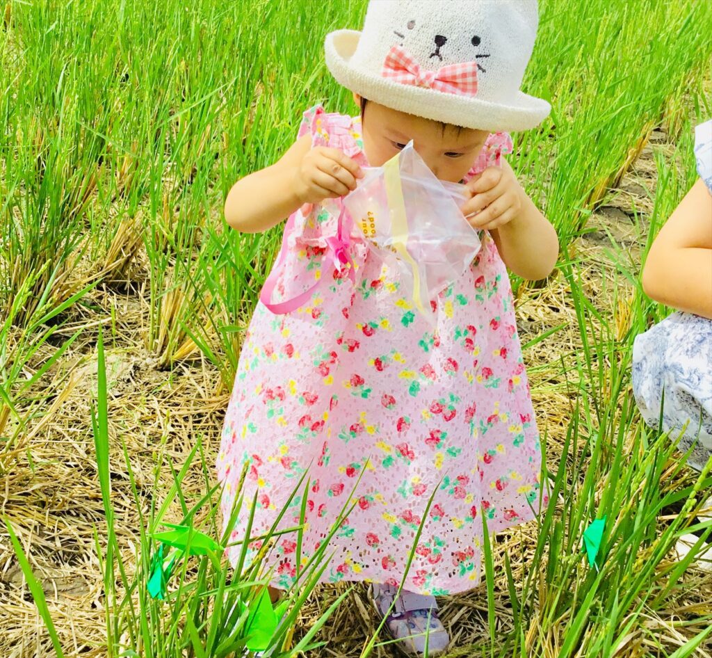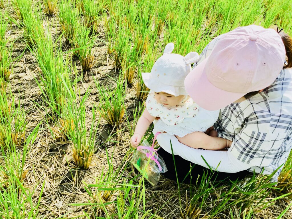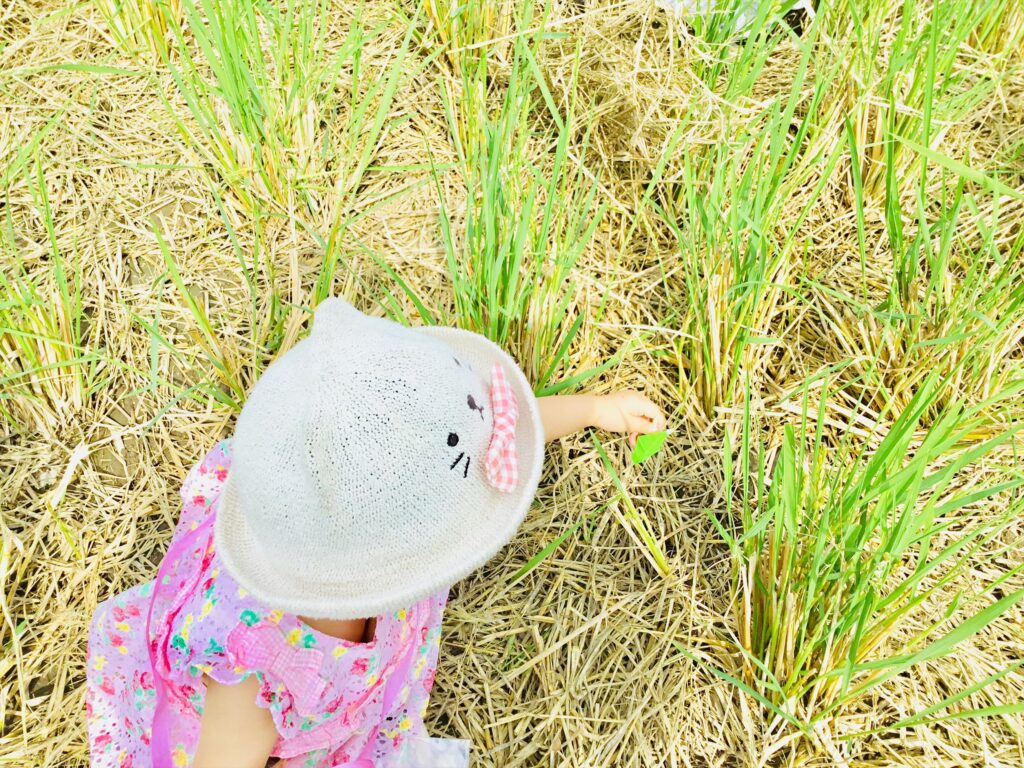 今日は、稲刈り後の田んぼに遊びに行きました。