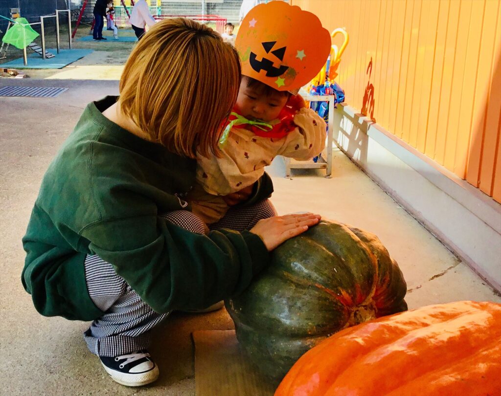 「うわぁ~。こんな大きなかぼちゃ、初めて見たぁ~!!」「大きいね!!」