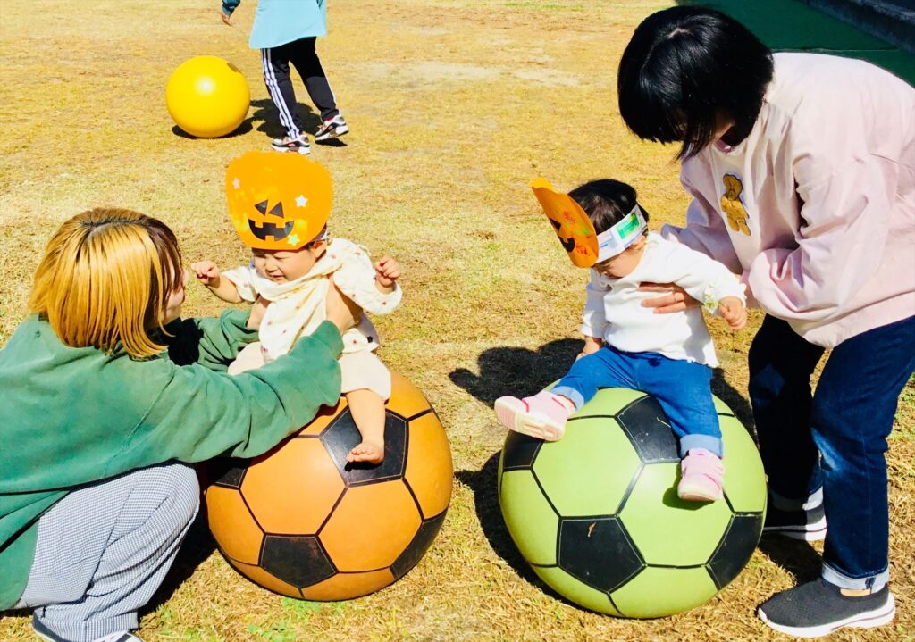 「見て~。バッタ捕まえたよぉ!!」秋の自然に触れながら戸外遊びを楽しんでいます。天気が良い日の午前中は戸外で遊んでいます。親子共に帽子と水分補給を忘れずにお持ち下さい。子育て支援センター便り11月号は、10月31日(金)の夕方にホームページの更新をします。ご確認下さい。11月もいろいろな秋を感じながら遊びましょう♬ご来園お待ちしております。