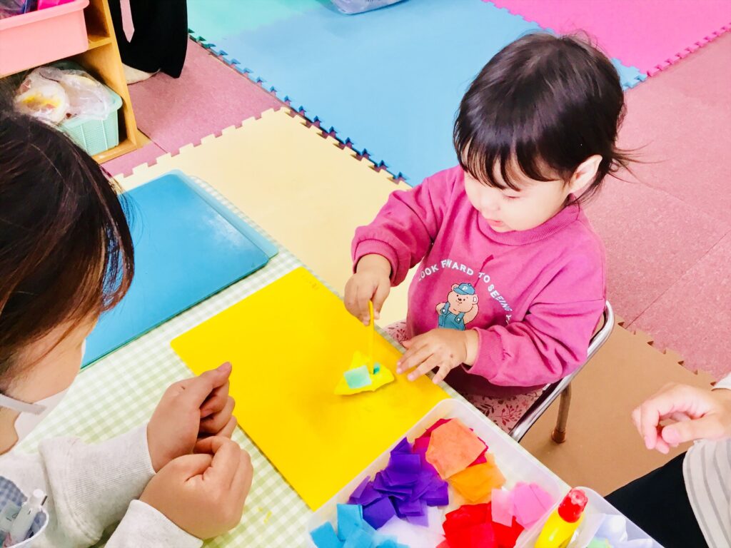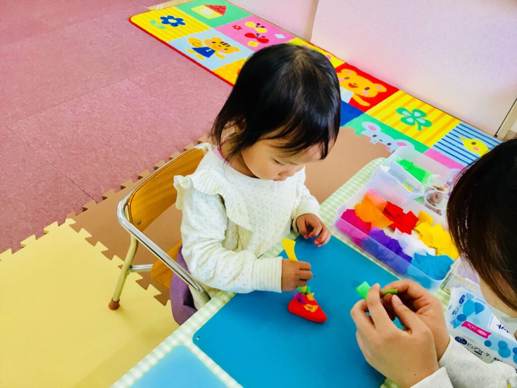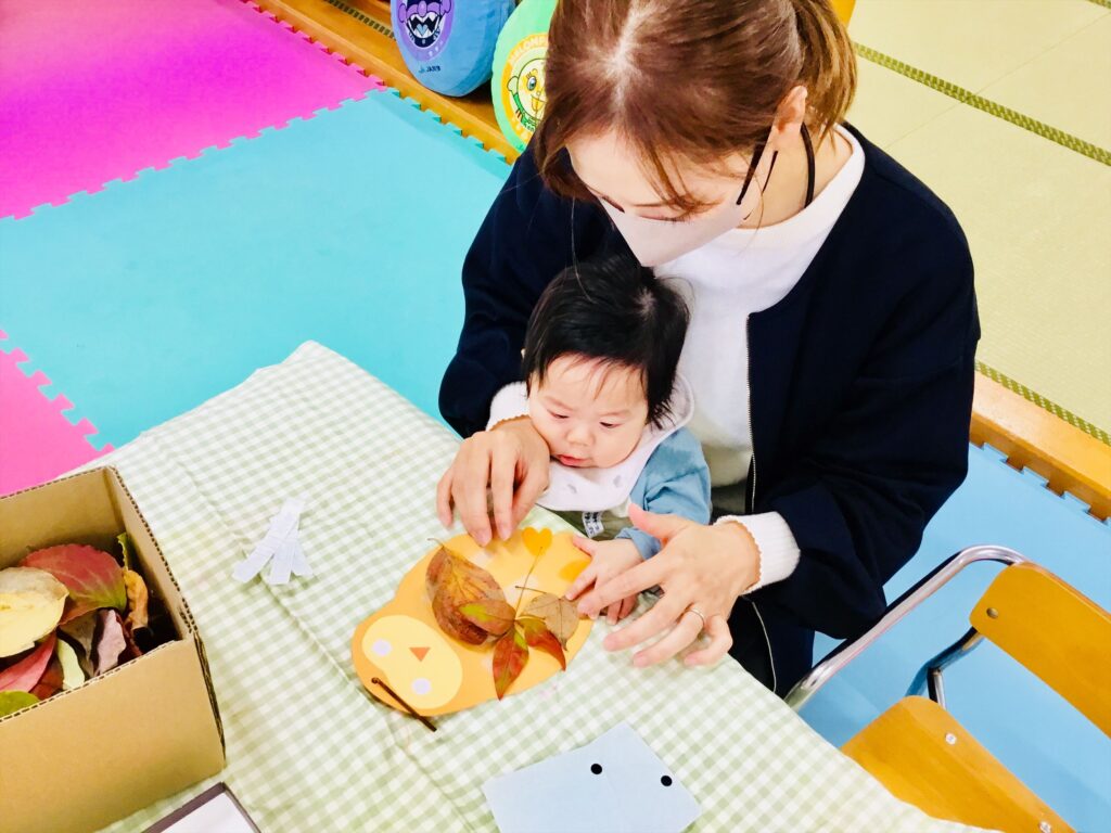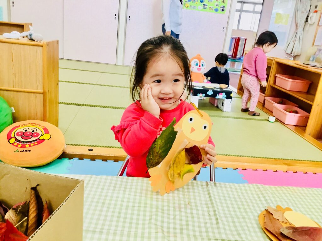 「できたぁ!!」「あったかいお洋服になったね。」いろいろな落ち葉に触れて色や大きさに興味を示しながら遊んでいます。☆福を呼ぶフクロウを作ってみませんか?