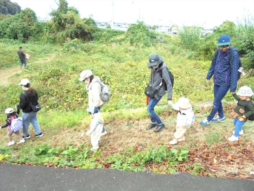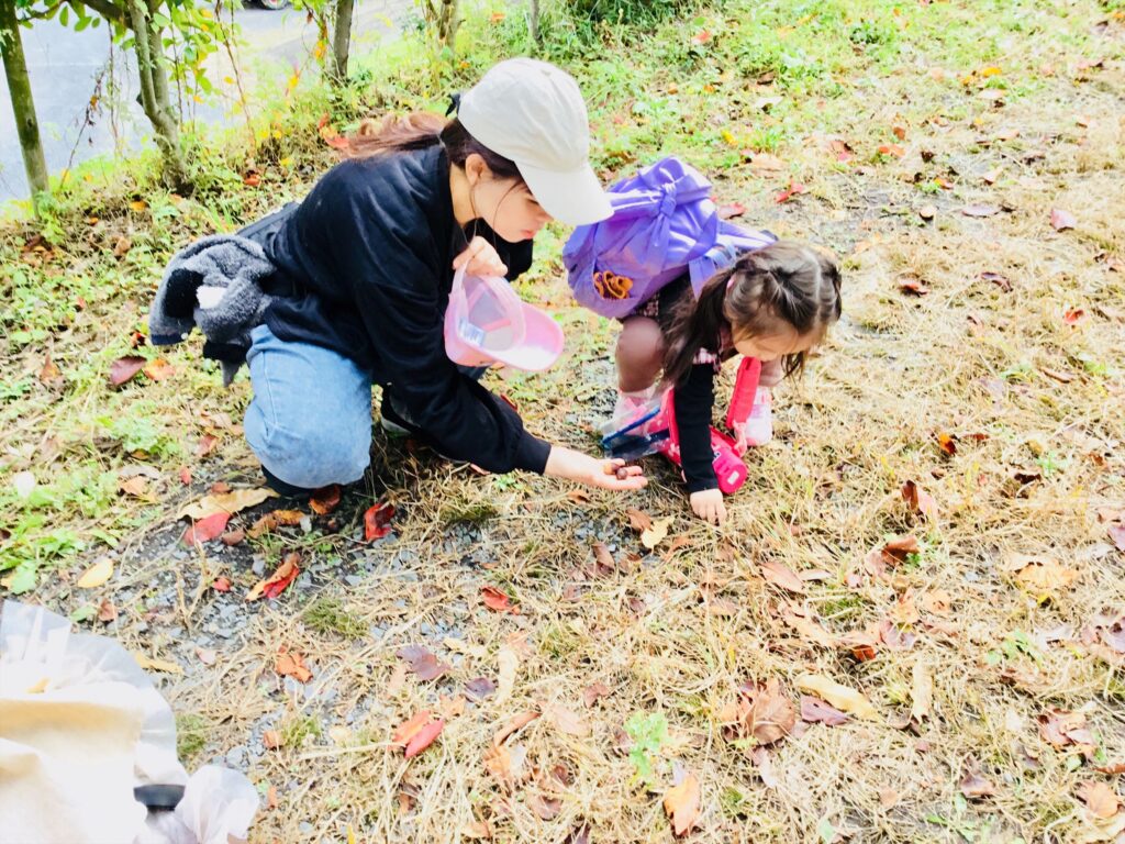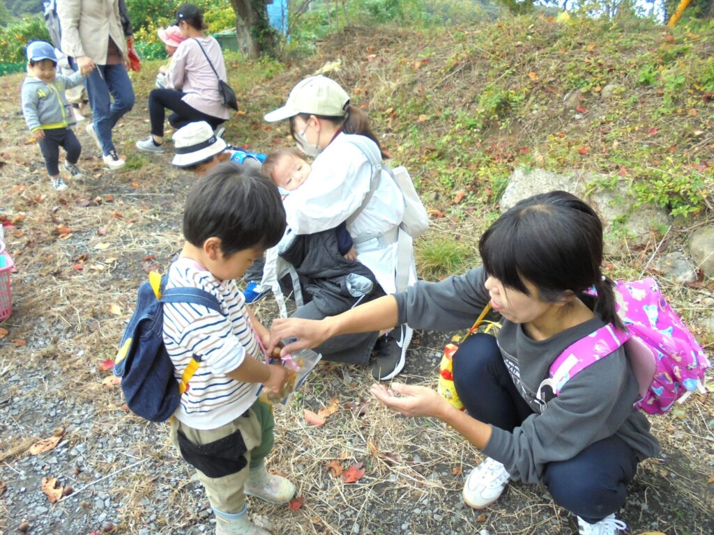 農園からの帰り道では、どんぐり拾いや落ち葉拾いを楽しみました。