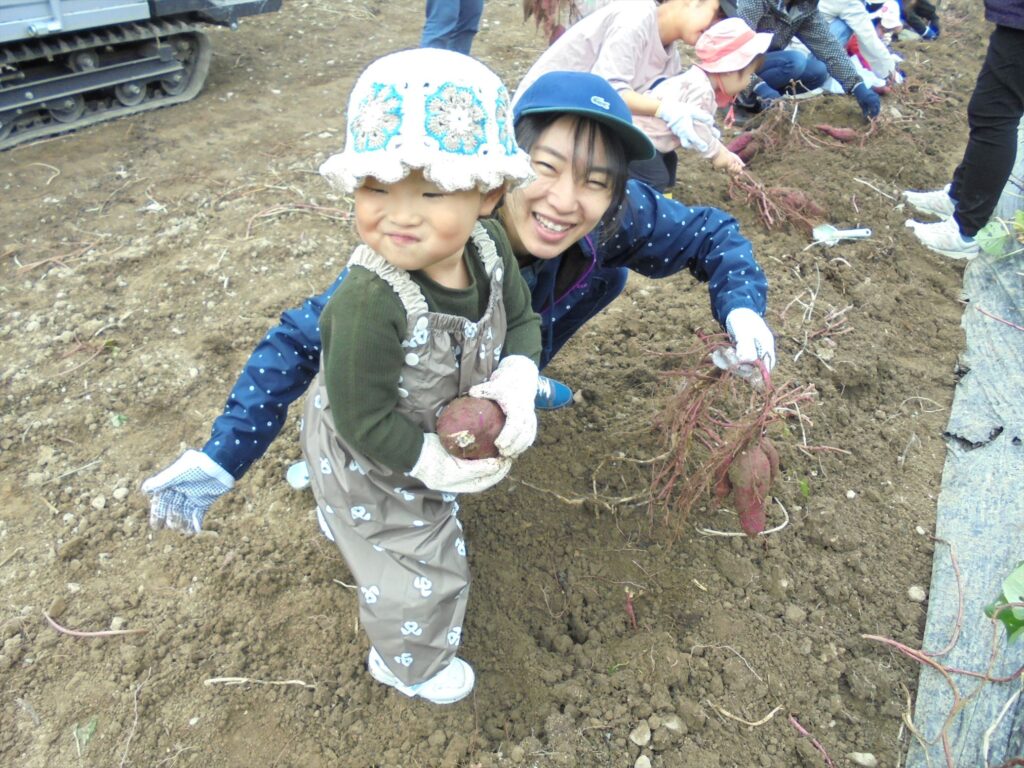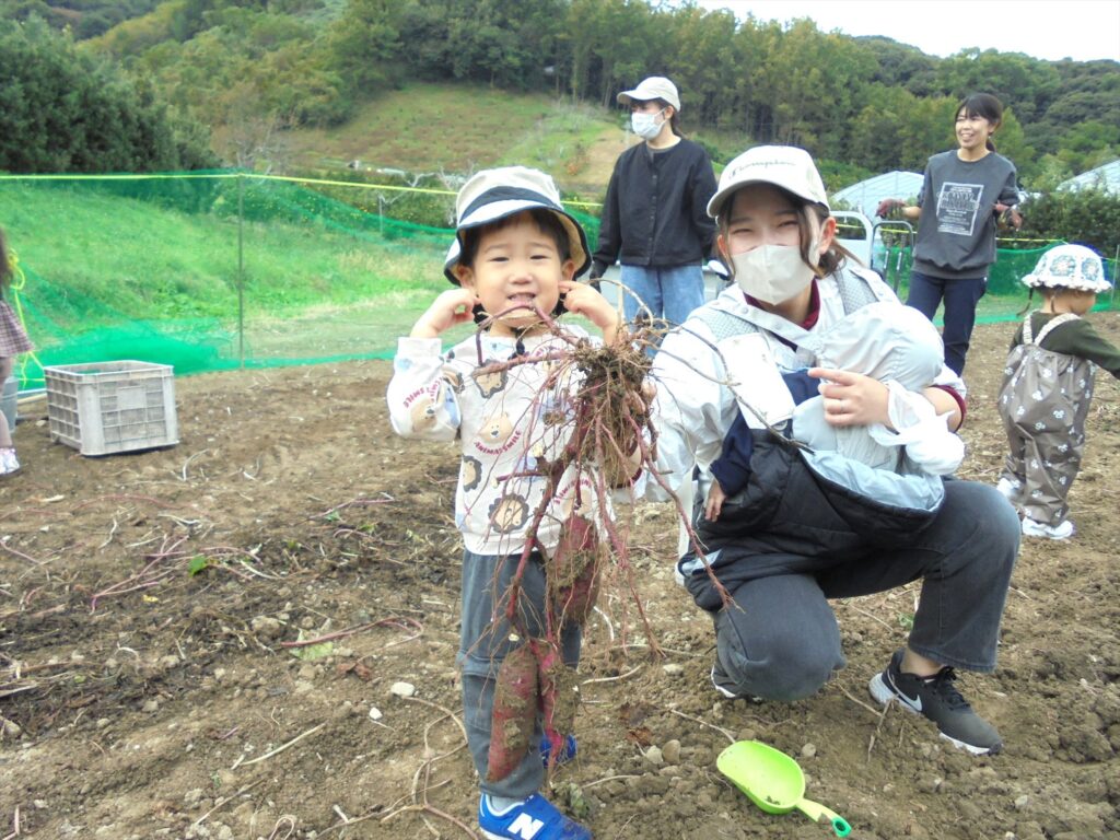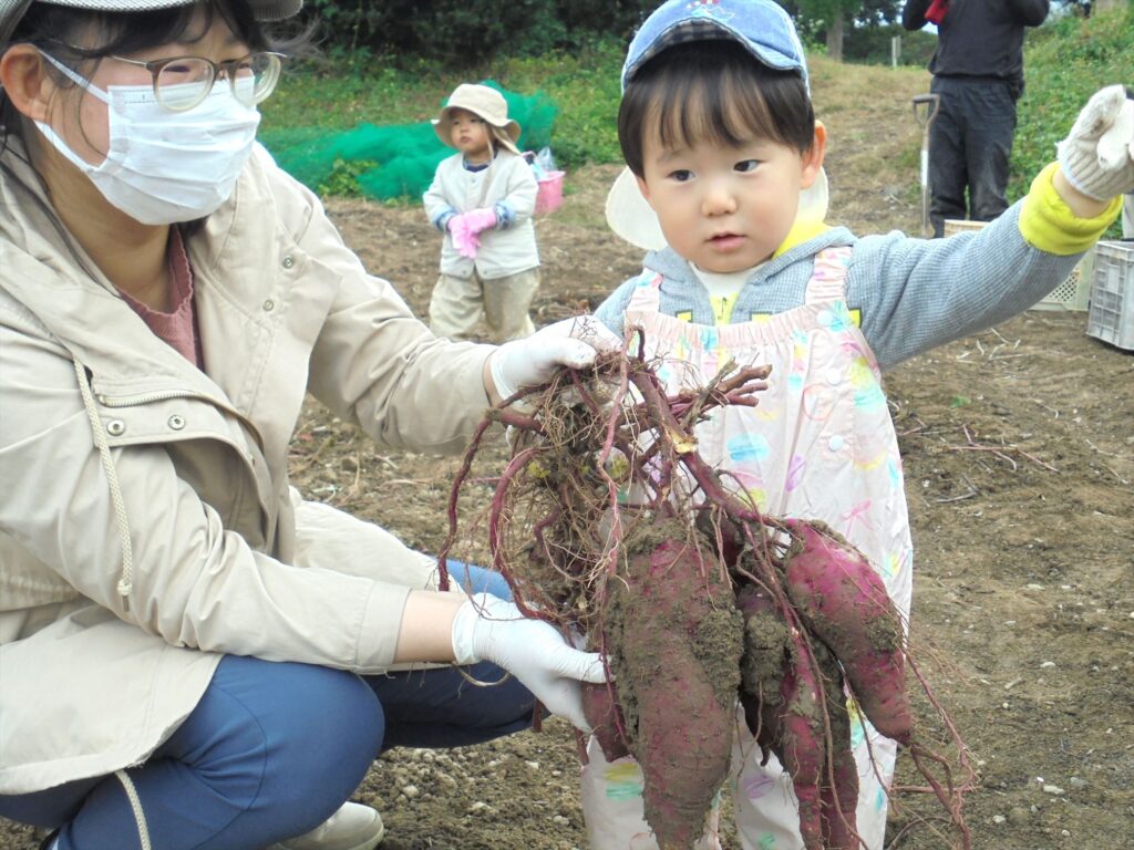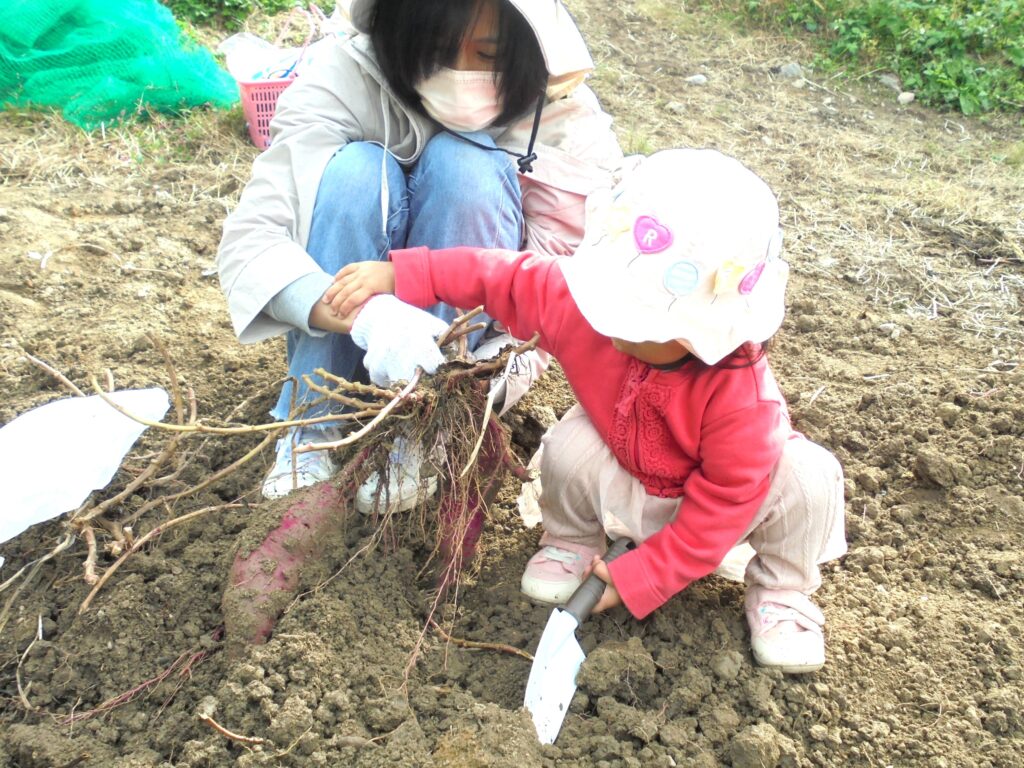 「見て、みて~♪」「どろんこお芋だよぉ。」