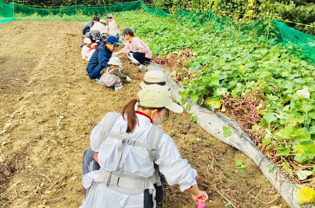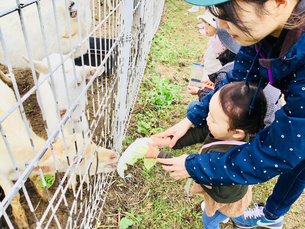 森のこども園第7回(1歳児、2歳児)アルムの里で芋ほりとヤギのふれあい体験