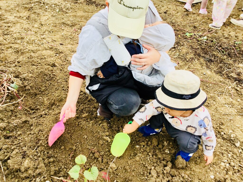 掘ったお芋は親子で運びます。落とさないように大事に持ってましたよ。