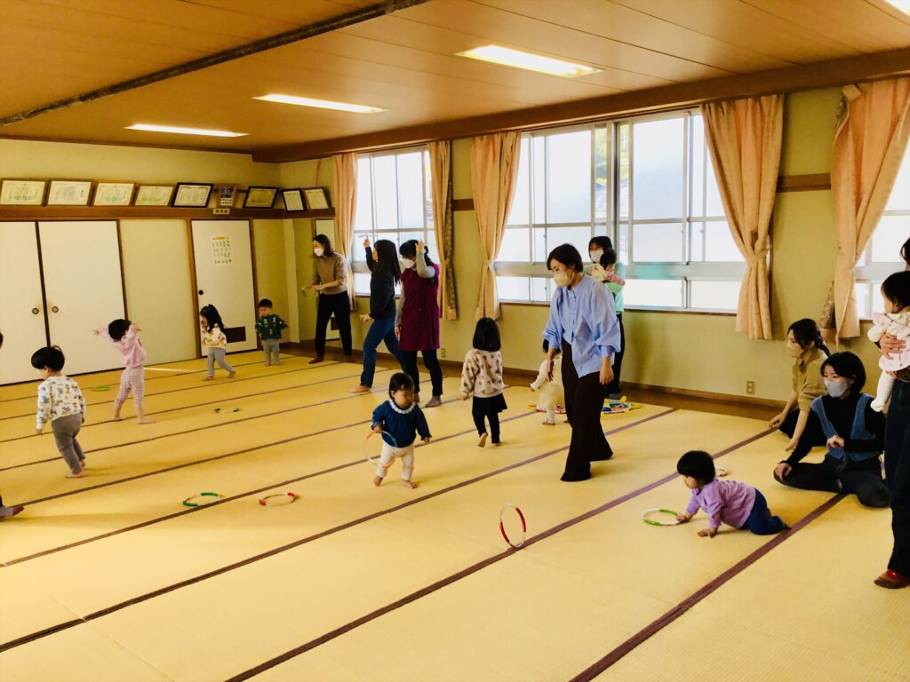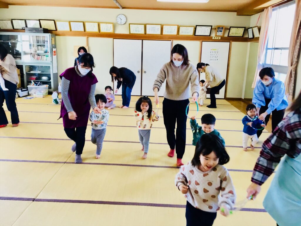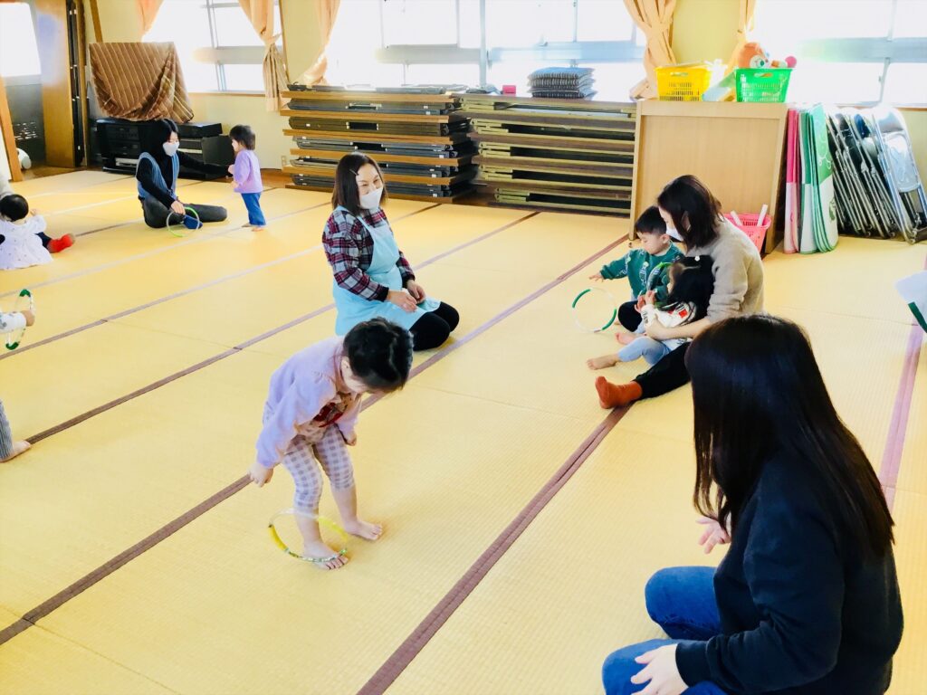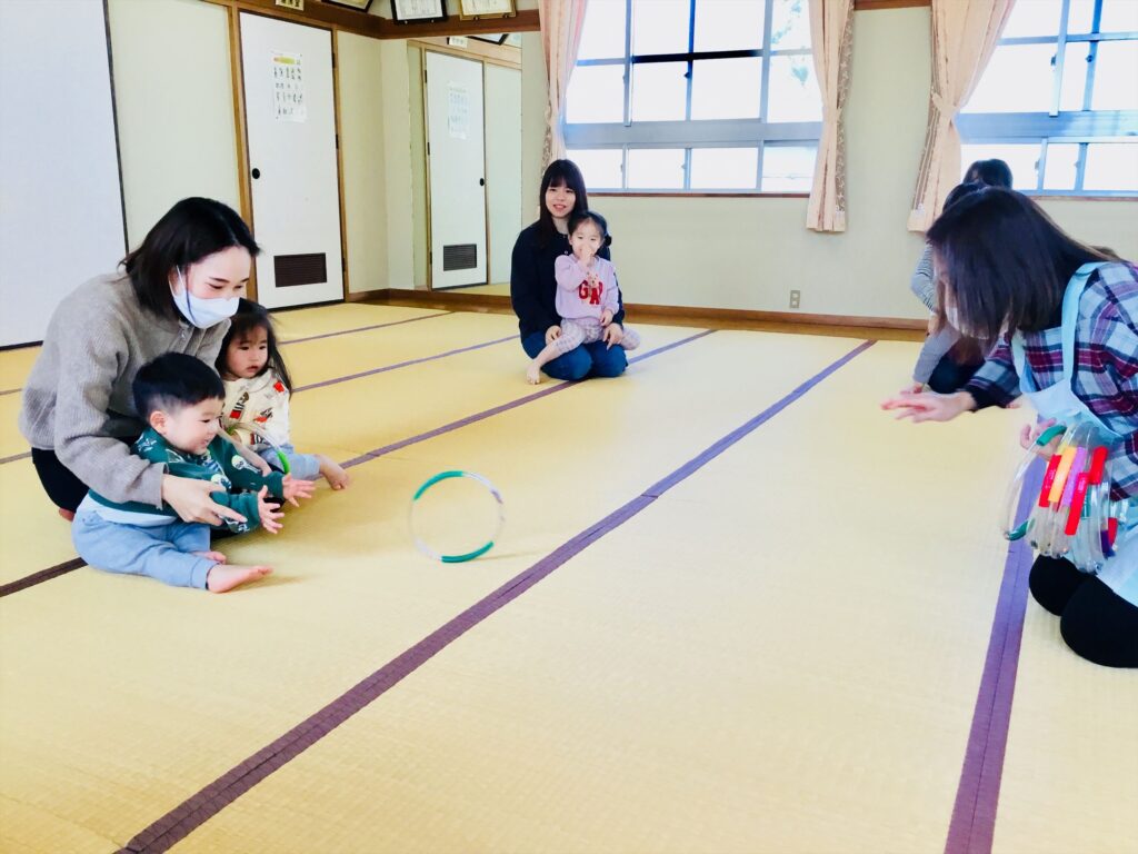 ホースリングの遊びも工夫次第で、いろいろな遊びを楽しめます。新聞紙等で輪っかを作って、是非家庭でも遊んでみてくださいね☆