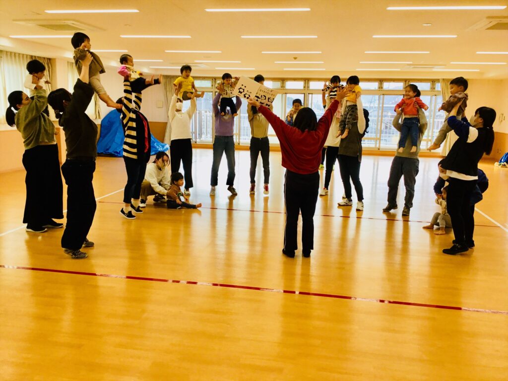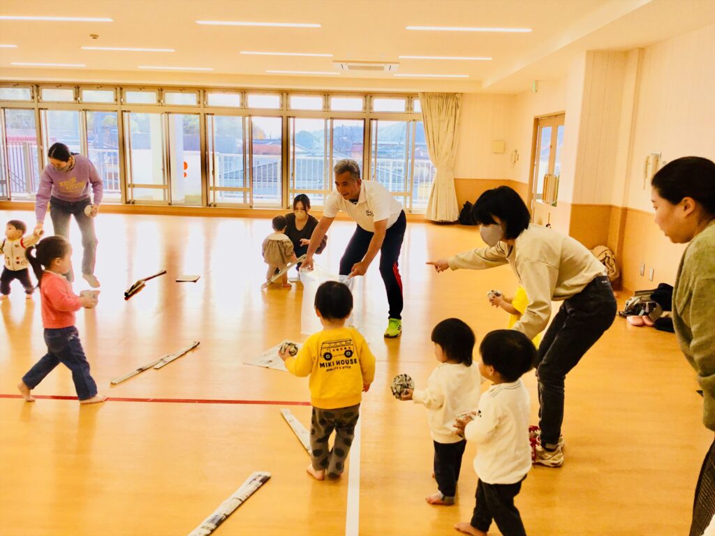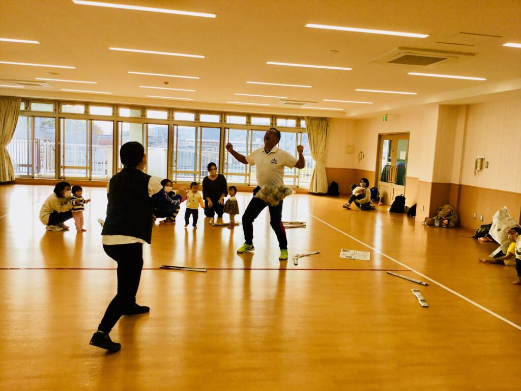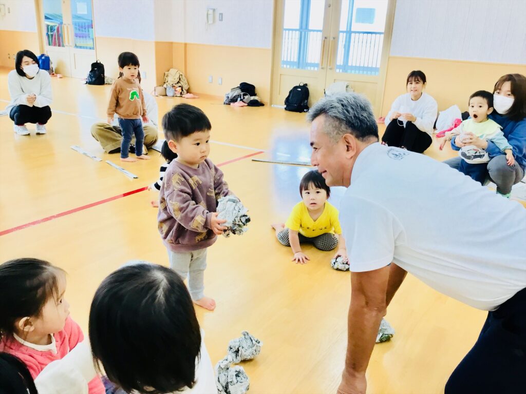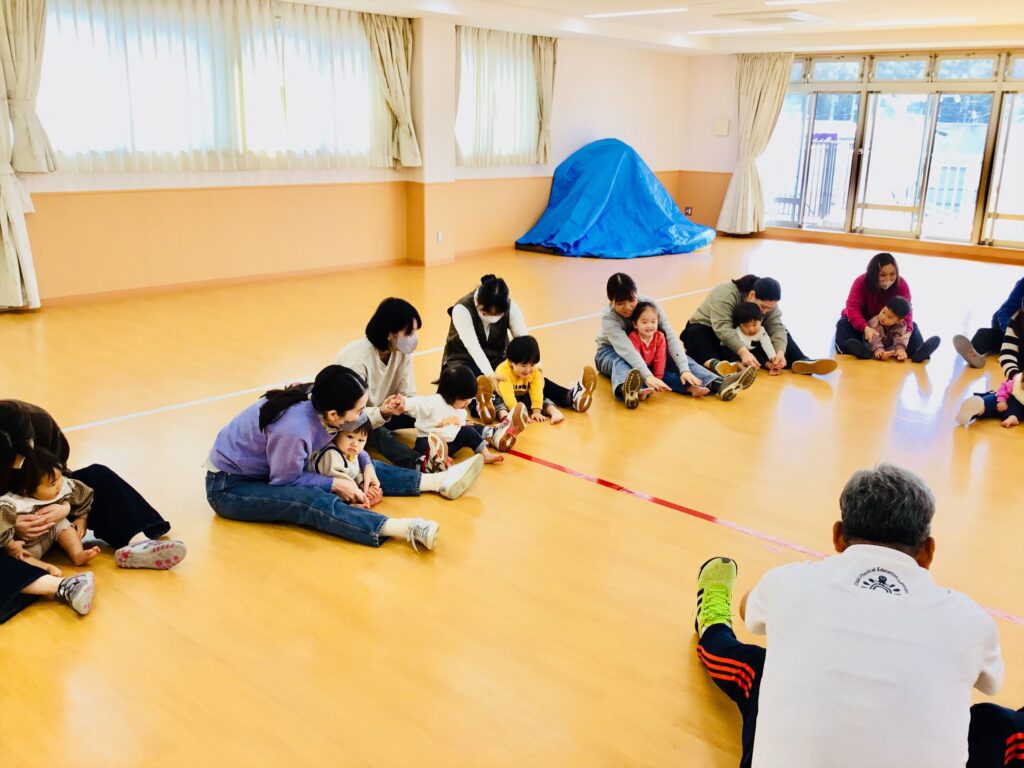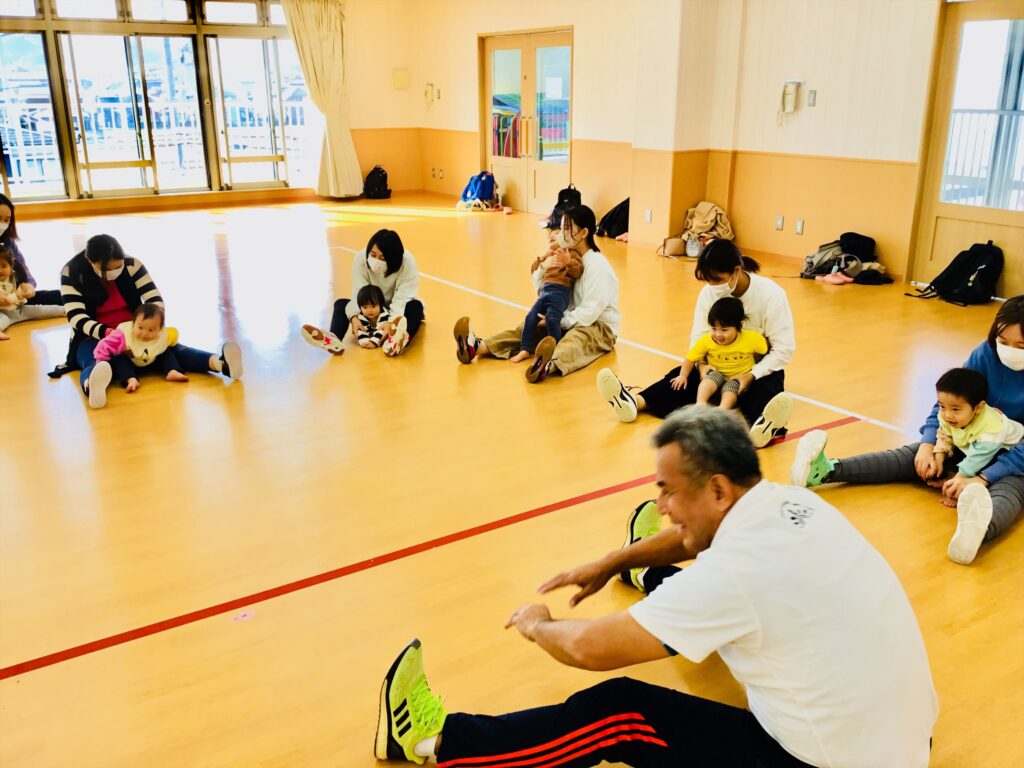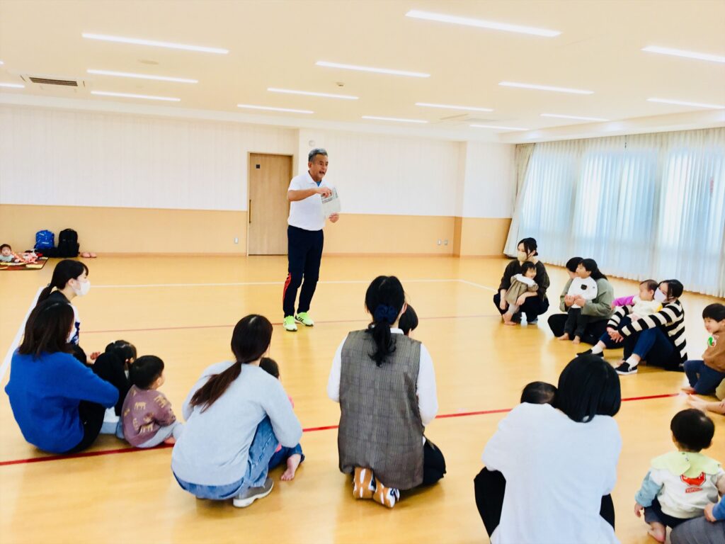 今日は、得能朝雄先生に子育て支援センターにて親子で楽しめる運動遊びを教えていただきました。