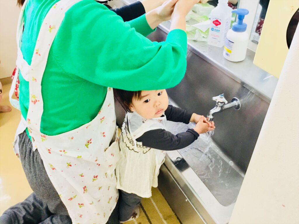 まずは、手洗いをしました。丁寧に手を洗って、消毒をしたら準備OK!!