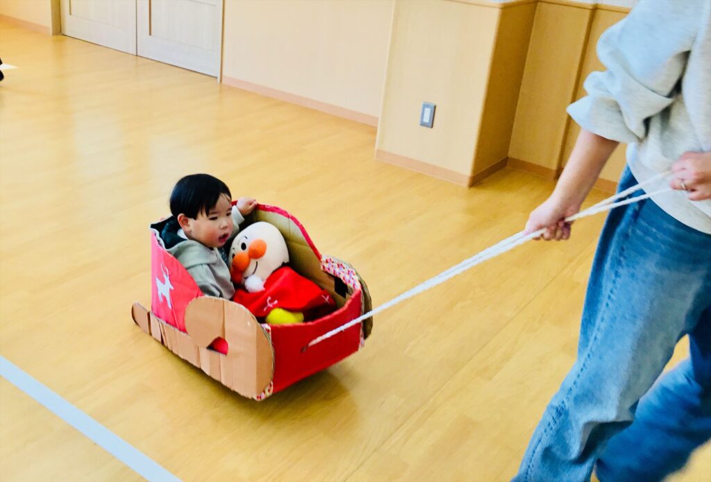 お母さんトナカイに引っ張ってもらって、ちびっこサンタのお出かけです♬