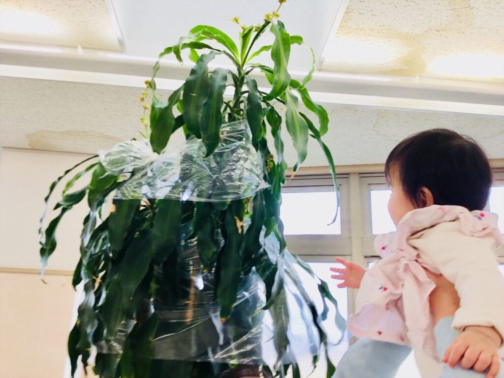 12月23日で、今年の子育て支援センタールームの開放は終了しています。幸福の木(ドラセナ)の蕾の茎が日に日に伸びてきていますよ。