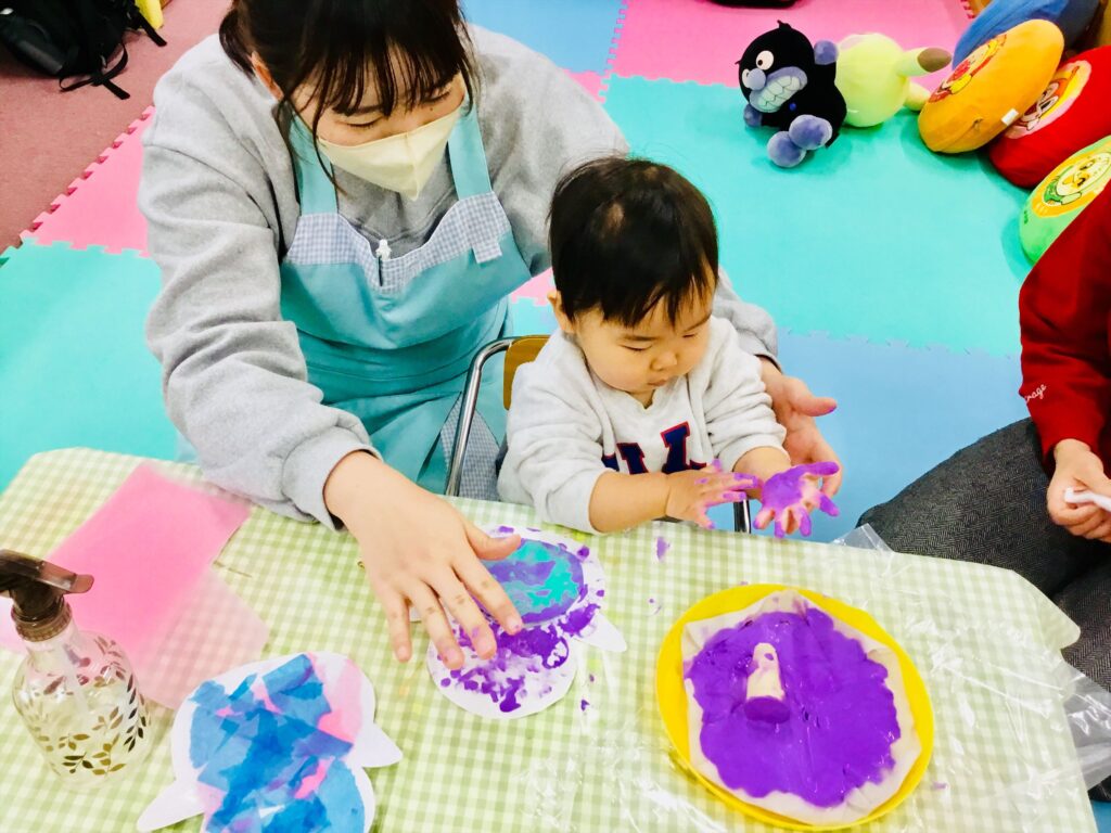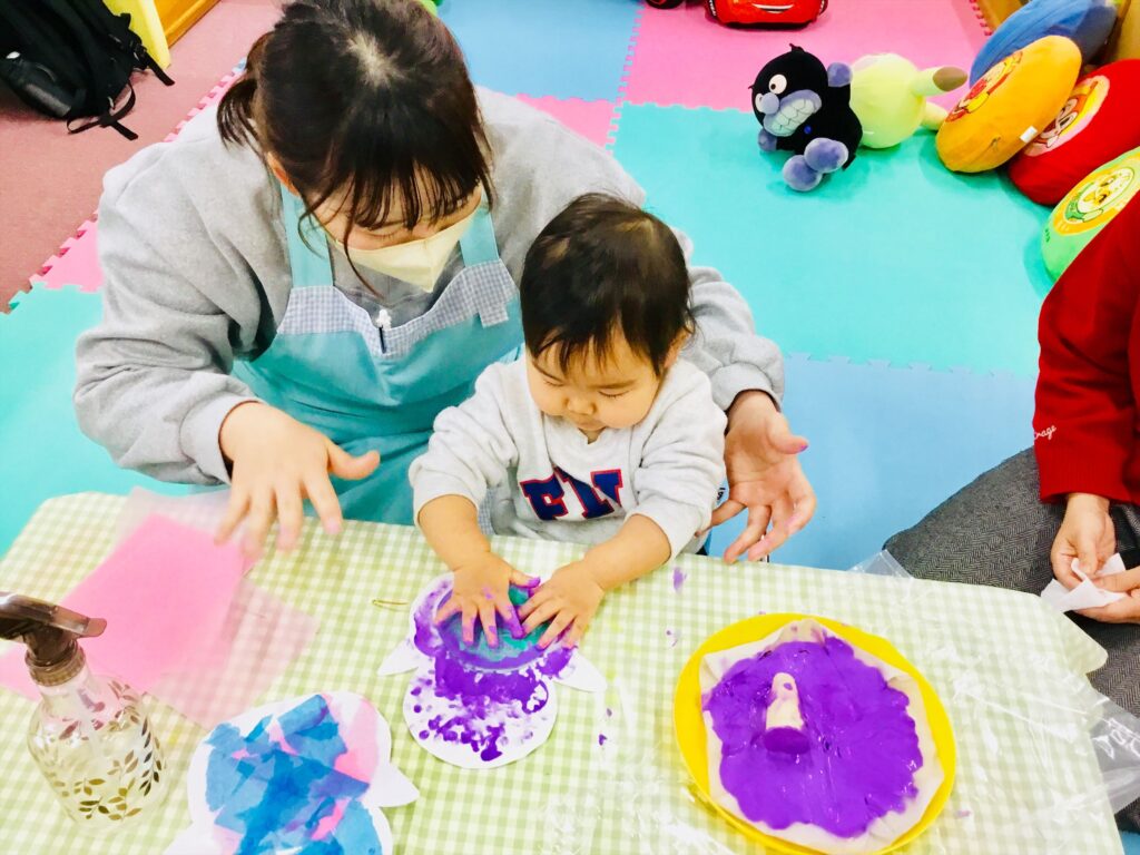 手のひらに、絵の具をつけると・・・気持ちいい~(^^♪