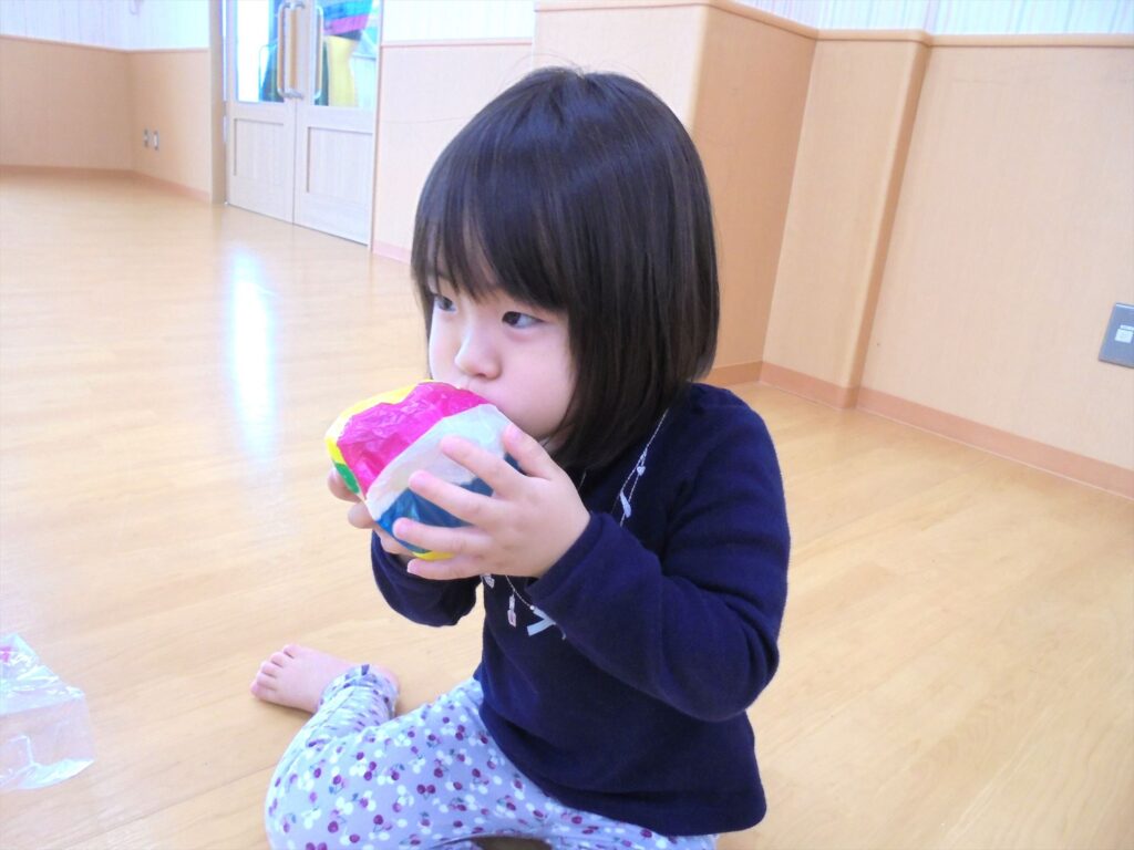 お母さんに声をかけてもらいながら、一生懸命膨らましたね。