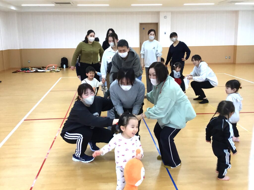 わらべ歌のリズムと音階が心地良く、自然と口ずさみながら遊ぶお母さんもいましたよ。