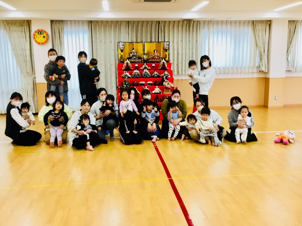 もうすぐ桃の節句です。最後は「うれしいひな祭り♬」の歌をお雛様を見ながら歌いました。