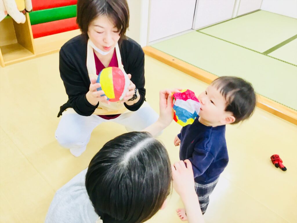 人は、本来鼻で呼吸をしますが、今は特に感染予防や花粉症対策でのマスク生活で、息苦しさから口呼吸の人が増えているようです。親子で遊びながら、お口の周りの筋肉を鍛えて健康に生活できたらハッピーですね(^^♪是非家庭でも遊んで下さいね。