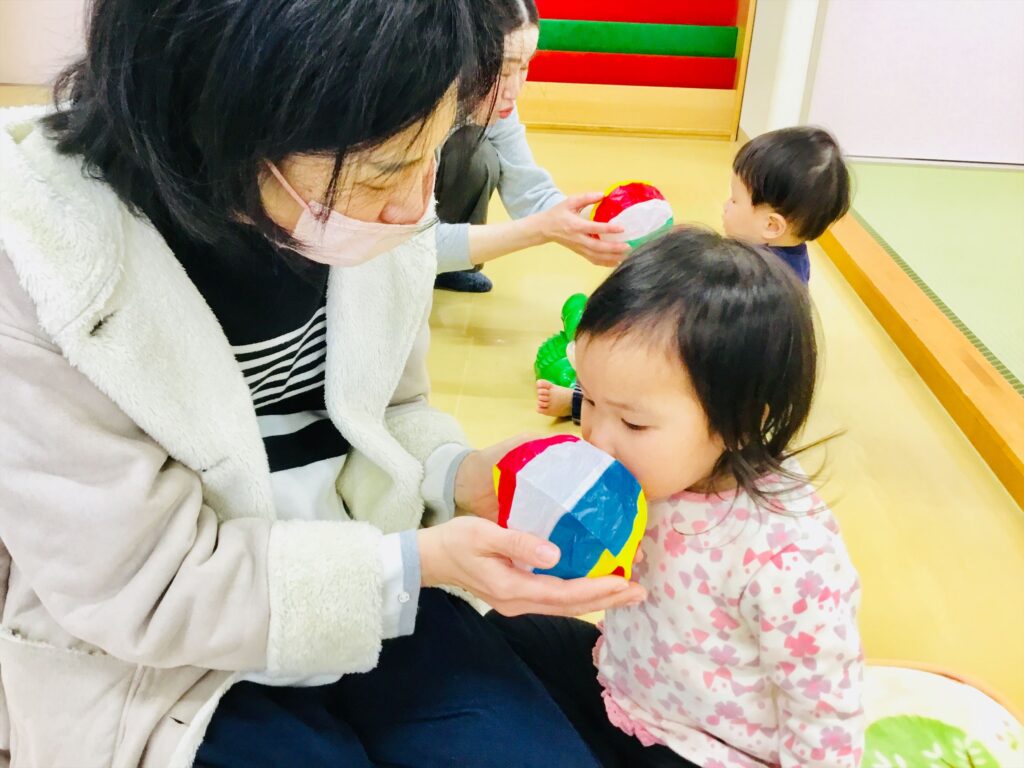 繰り返し、「ふぅ~。」少しずつ膨らんでくると喜ぶ姿がありました。