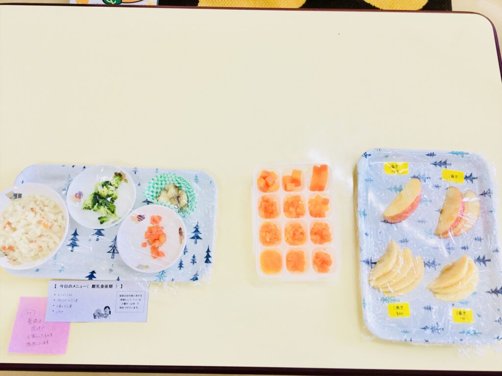 当園の0歳児クラスで提供しているりんごの形状と切り方を確認して頂きました。窒息事故の報道から、りんごを食べさせる事を警戒している保護者が増えているのを感じます。今回は、「噛む力を育てる事」についてポイントを置いて月齢に合わせた食の形態について具体的に教えて頂きました。