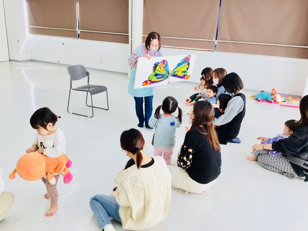 最後は、ミュージックシアター「はらぺこあおむし」を行いました。歌を一緒に口ずさみ楽しんで見ました。あおむしが綺麗な蝶になると、みんな大喜びでした。