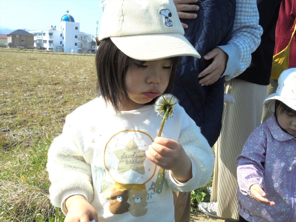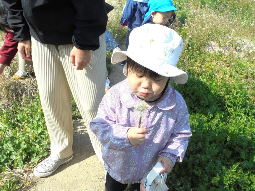 せーのっ!ふぅ~!!吹いてみると・・・綿毛が飛んでいって大喜び(^^♪