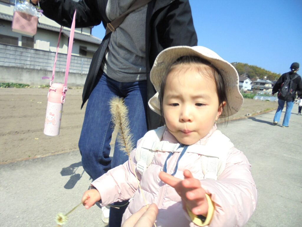あっ!!また、春みぃつけた。エノコログサに触れてにっこにこ~(^^♪