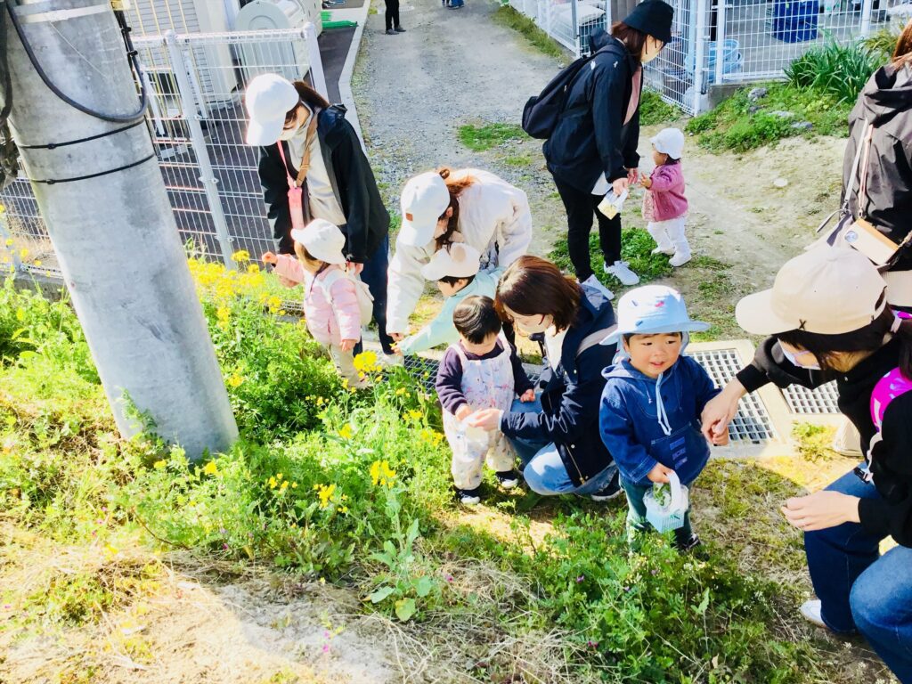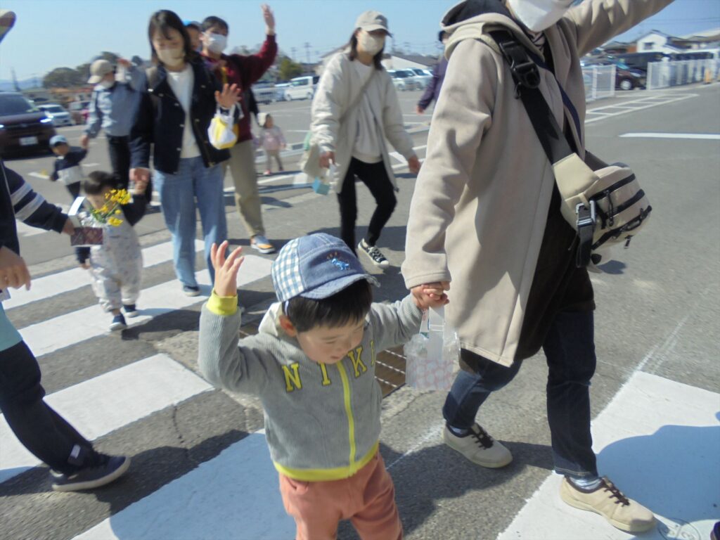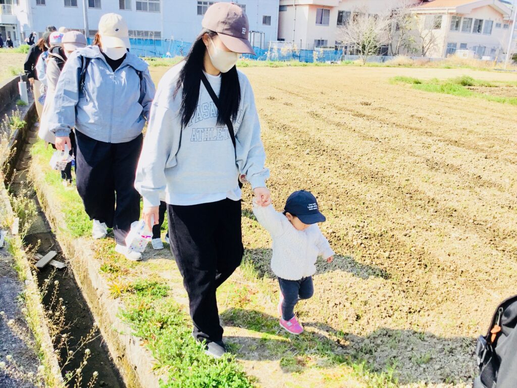 車で移動する事が多い中で、親子で手を繋ぎお散歩をする体験はいろいろな発見があり有意義なものです。是非家庭でも交通安全に気を付けながら近所を散歩して自然を感じて下さいね。