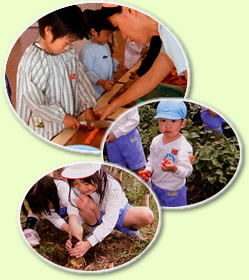 草すべり、イチゴ狩り、海遊び、川遊び、虫取り、そりすべりなど季節の違いを感じて自然の中でいっぱい遊んだよ。