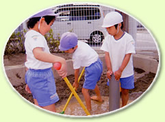 色水づくりやシャボン玉、お店やさんごっこにお化け屋敷など異年齢での遊びも盛んです。