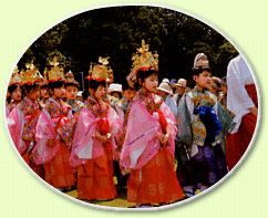 野点祭りには、古式ゆかしき稚児行列に参加し、あまりのかわいらしさに歓声が上がりました。