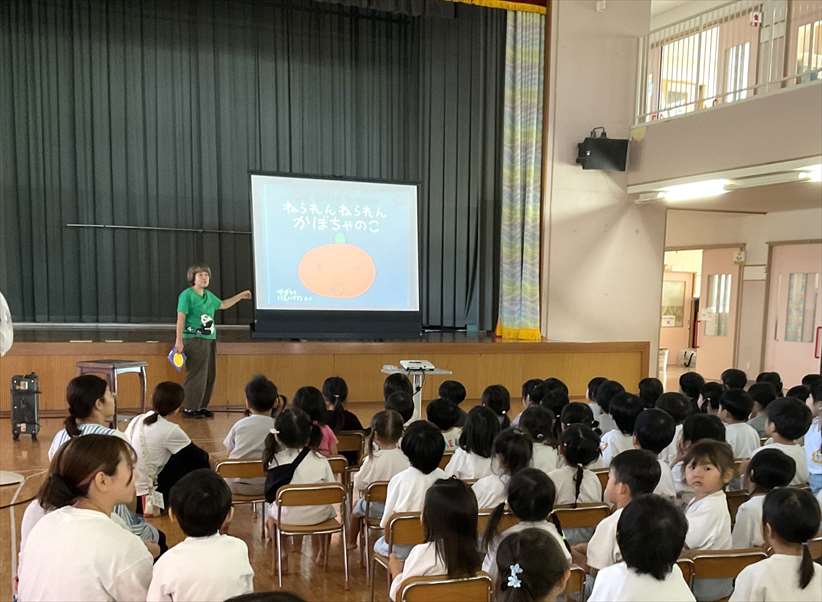 今日は、9月のおはなし集会でした。3号・年少さんたちはお月見の絵本を、年中・年長さんたちは敬老の日にちなんだ絵本をえっちゃんに読んでもらいました。そして、朝ドラ「あんぱん」の影響からやなせたかしさんがはじめて作った「あんぱんまん」の絵本をみんなで読みました。初代あんぱんまんは指が5本あったり、顔が少し違う表情でみんな大注目で見ていました。最後に、やなせたかしさんがつくった「手のひらを太陽に」をみんなで歌いました。困っている人を助けるアンパンマンはやっぱりとっても優しくてかっこよかったです!