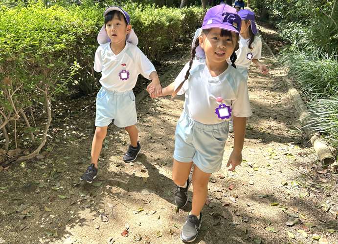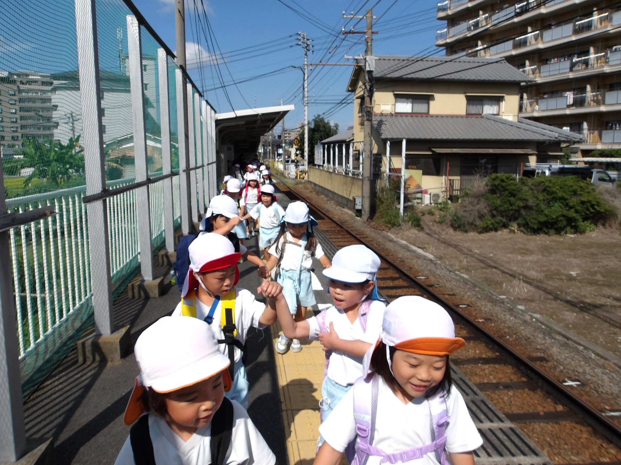 年長組が、電車に乗って遠足に行きました。いつもなら、バスに乗ってのお出掛けですが、乗り物が違うだけでテンションMaxの子や少し緊張する子など様々。到着後は、愛媛県美術館にて、絵画観賞をしたり、城山公園を散策しながら秋を見つけたりしました。イチョウの葉やまつぼっくりが落ちていて、秋の自然を感じながら、お弁当やおやつを食べて楽しみました!