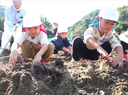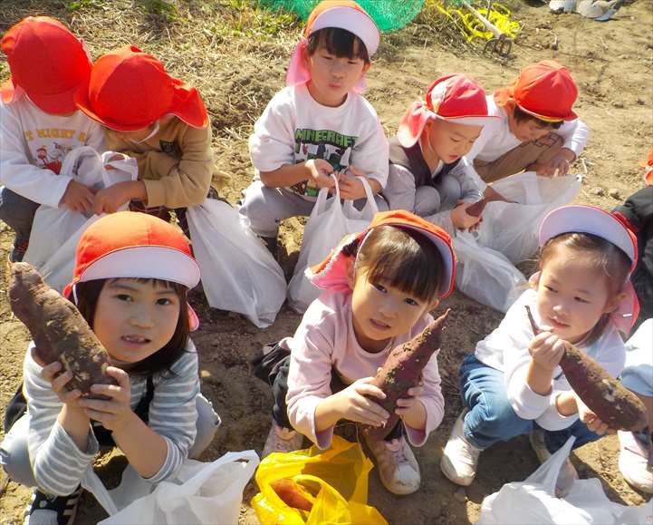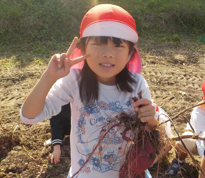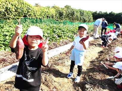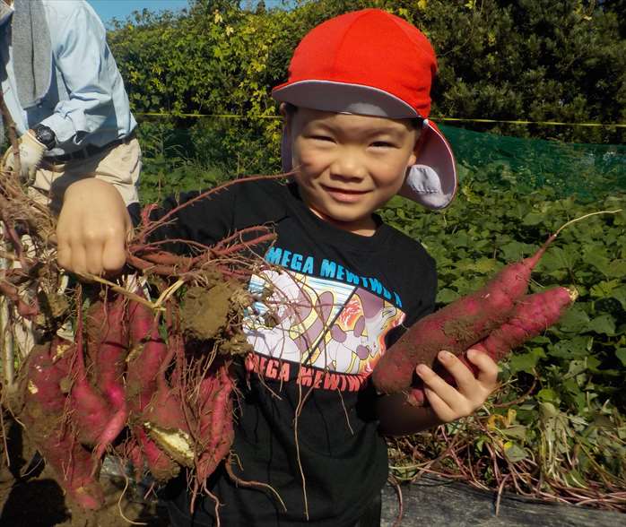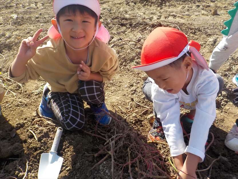 れんげ組に引き続き、ばら組・ゆり組もさつまいも掘りに出掛けました。友達と協力しながら力いっぱい引っ張って、大小たくさんのさつま芋をゲット!思わず満面の笑みがこぼれていました。