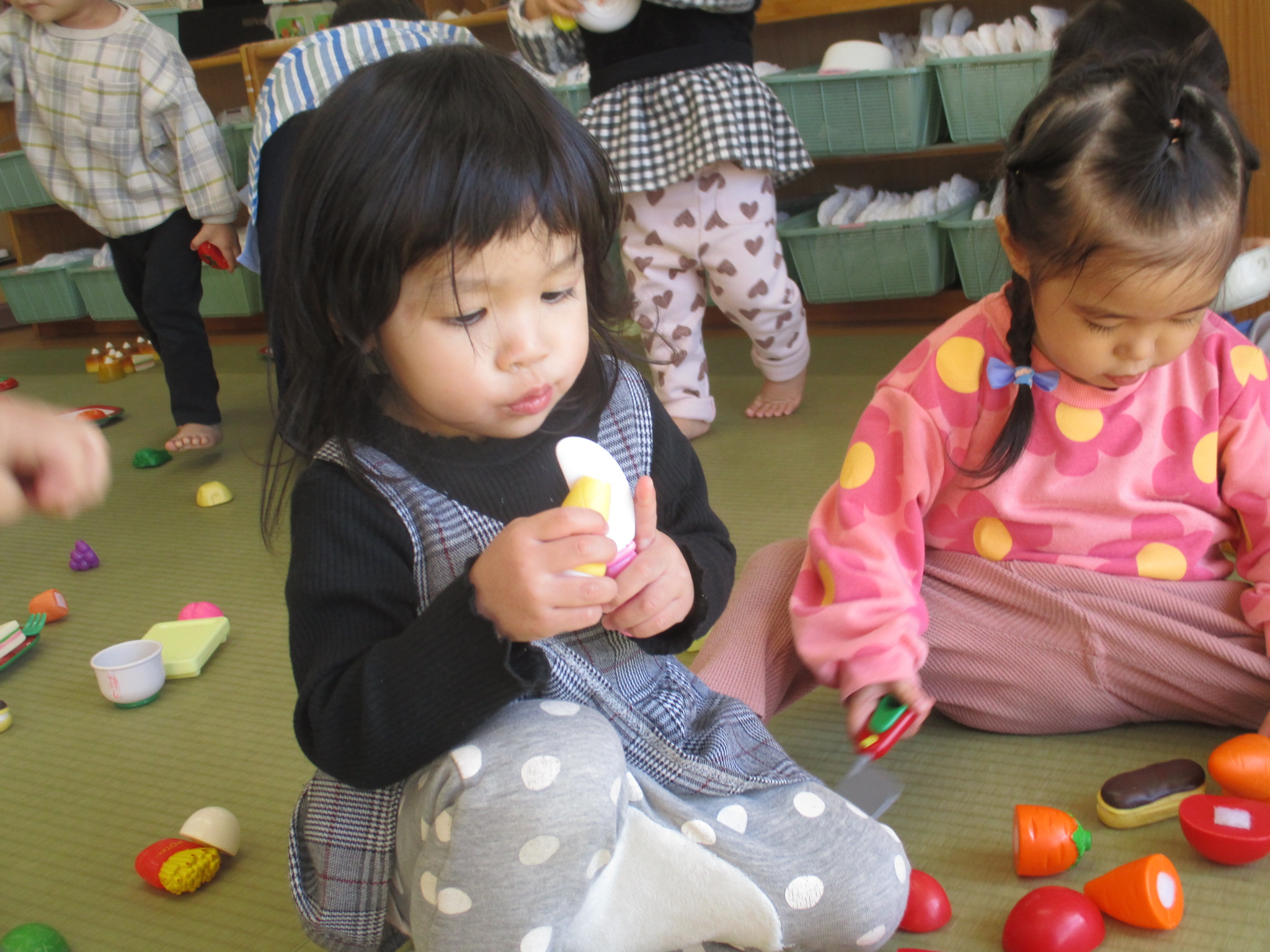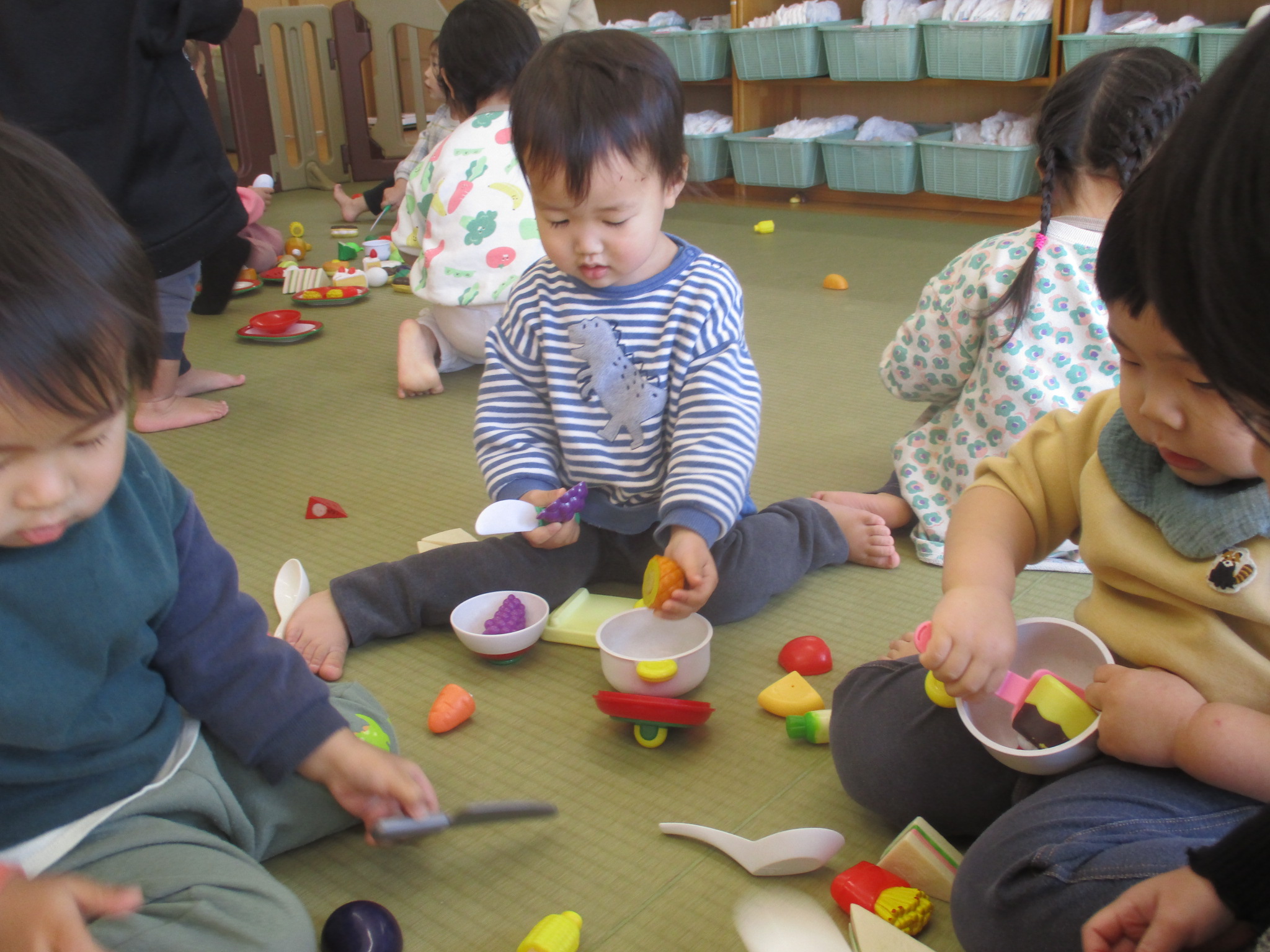 進級へ向けてひばり組と交流して遊びました。お隣のクラスだけど初めて一緒に遊ぶ為ドキドキしている様子。しかし顔見知りの友達や先生がいて少しずつ落ち着いていつもの元気なみんなに♪まだまだ緊張している子もいましたが、たくさんの交流をして仲良しさんを増やしていきたいと思います。