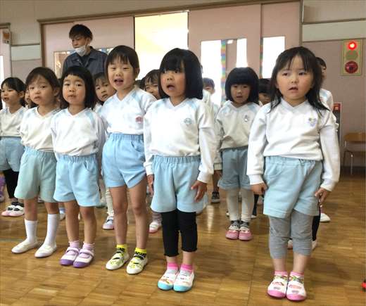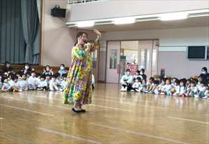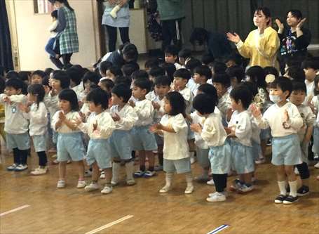 『はじめまして』の挨拶をした後は、『おはようの歌』。『花』をテーマにピアノの演奏や歌を聞かせて頂きました。次の『ドレミの歌』では、音に合わせて身体に触れて楽しみましたよ。最後に歌った『おはながわらった』は、歌声がホールに響き、先生に「きれいな声で歌えて、とても上手だったよ!」と、褒めて頂き、素敵な時間を過ごしました。