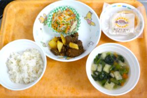 News & Topics Top News & Topics 9月30日(火)の給食 ★ 今日のメニュー ★ 麦ごはん、レバーの香り揚げ、 ビーフン炒め、みそ汁、 おやつは焼きプリンタルトです。 今日も美味しく仕上がりました♪ 2025.09.30 本日の給食