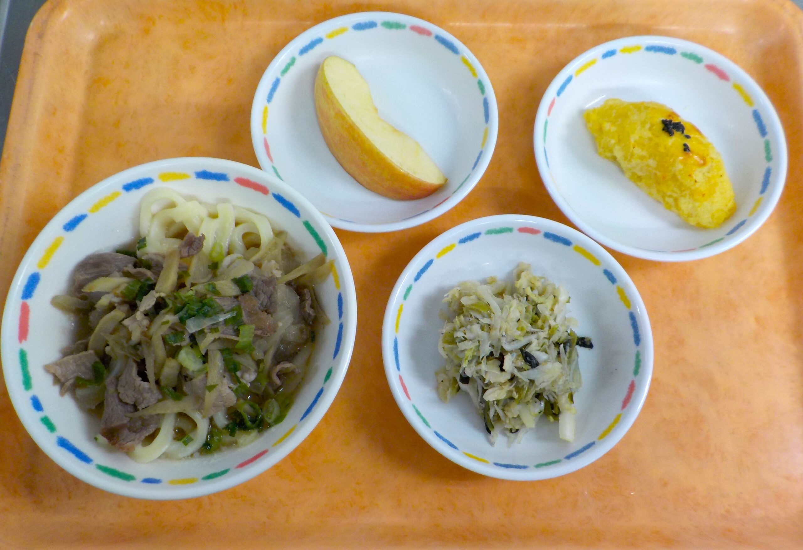 News & Topics Top News & Topics 10月27日(月)の給食 ★ 今日のメニュー ★ 肉うどん、ごまじゃこサラダ、 りんごおやつは手作りスイートポテトです。 今日も美味しく仕上がりました♪ 2025.10.27 本日の給食