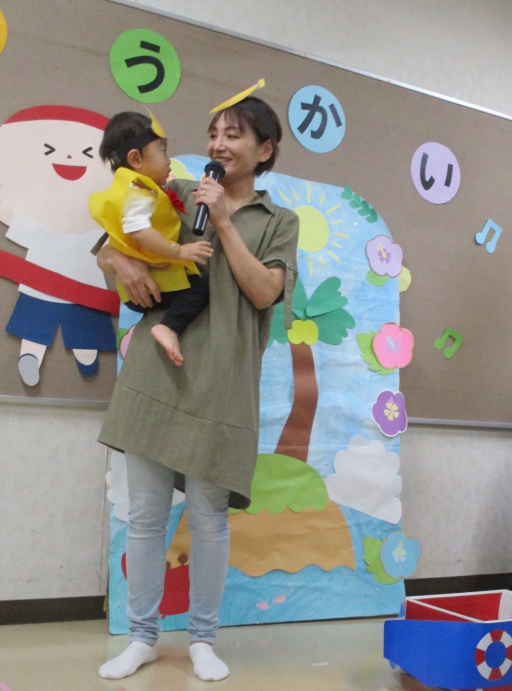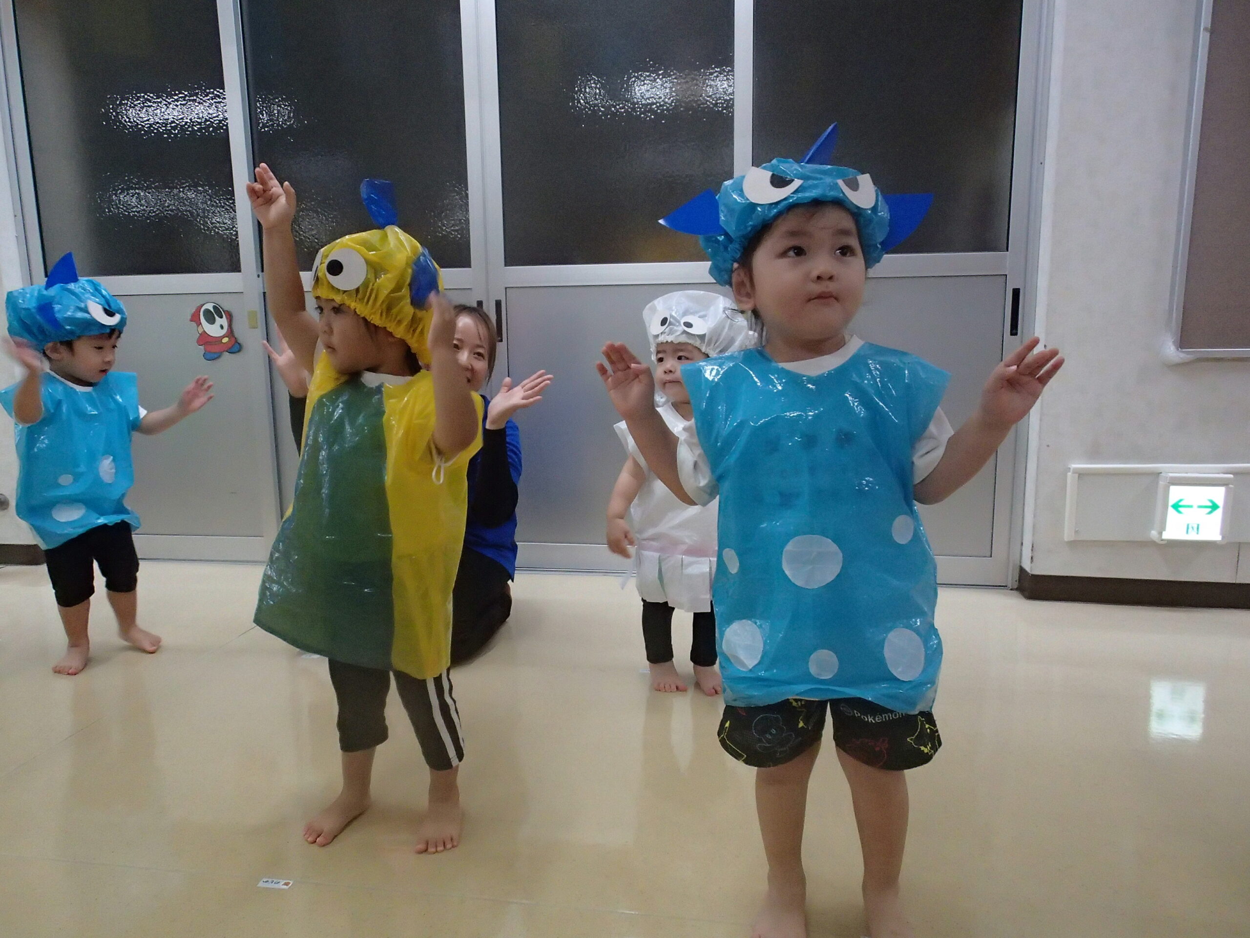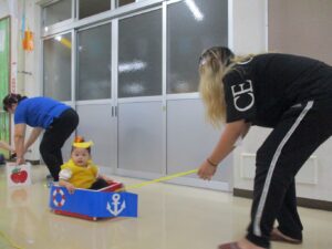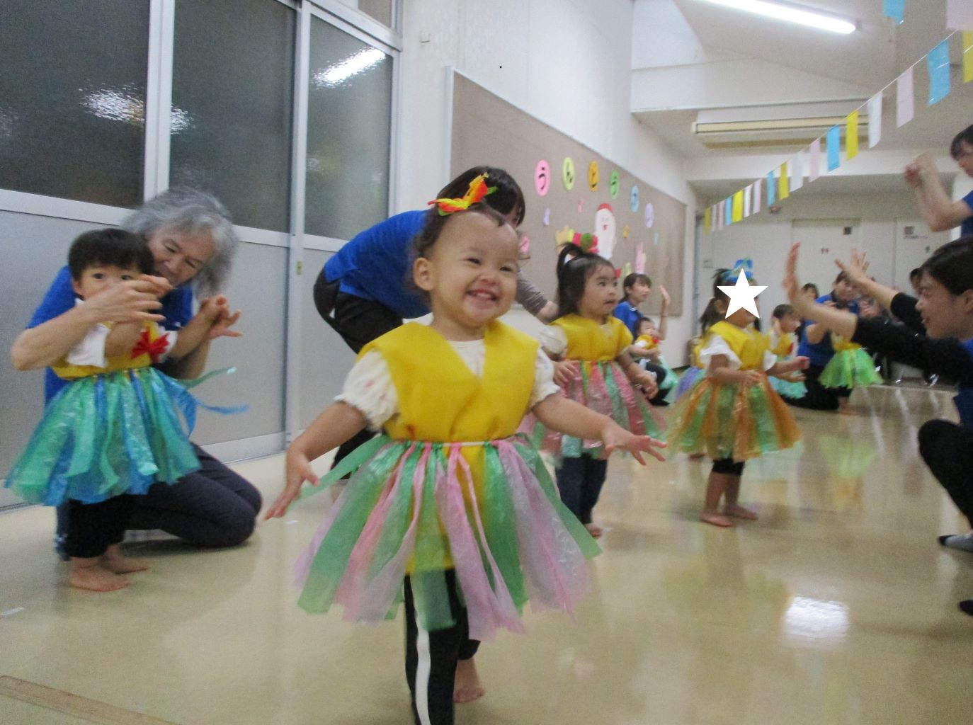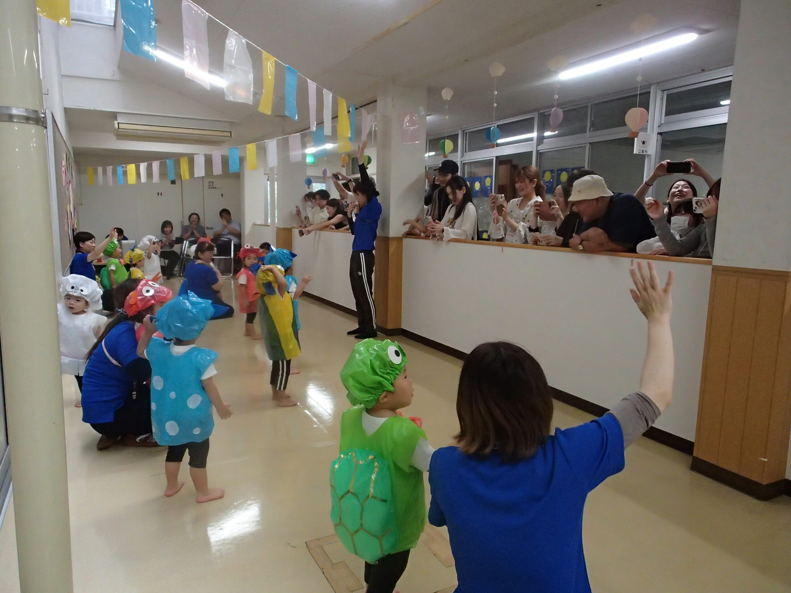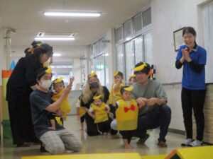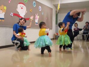 前日から雨で園庭の状態が悪く、室内での開催となってしまいましたが、子ども達は元気いっぱい参加することができました。