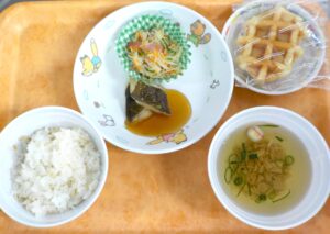 News & Topics Top News & Topics 10月28日(火)の給食 ★今日のメニュー★ 麦ごはん、カレイの和風ムニエル、 ビーフン炒め、すまし汁 おやつはワッフルです。 今日も美味しく仕上がりました♪ 2025.10.28 本日の給食