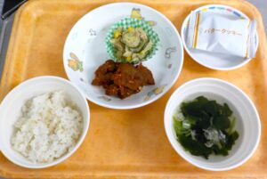 News & Topics Top News & Topics 11月11日(火)の給食 ★ 今日のメニュー ★ 麦ごはん、レバーのケチャップ和え、 ツナコーンサラダ、わかめスープ おやつはバタークッキーです。 今日も美味しく仕上がりました♪ 2025.11.11 本日の給食