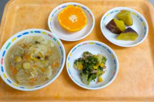 News & Topics Top News & Topics 11月26日(水)の給食 ★ 今日のメニュー ★ 中華丼、ブロッコリーのツナ醬油和え、みかん 手作りおやつはふかし芋です。 今日も美味しく仕上がりました♪ 2025.11.26 本日の給食