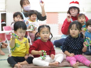 ハイタッチをしてサンタさんと素敵な時間を過ごしました。