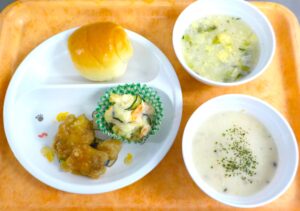 News & Topics Top News & Topics 1月7日(水)の給食 ★ 今日のメニュー ★ ロールパン、鶏肉のマーマレード煮、 ポテトサラダ、クラムチャウダー おやつは七草粥です。 星岡の七草粥は子どもたちが食べやすいよう卵を入れています。 今日も美味しく仕上がりました♪ 2026.01.07 本日の給食