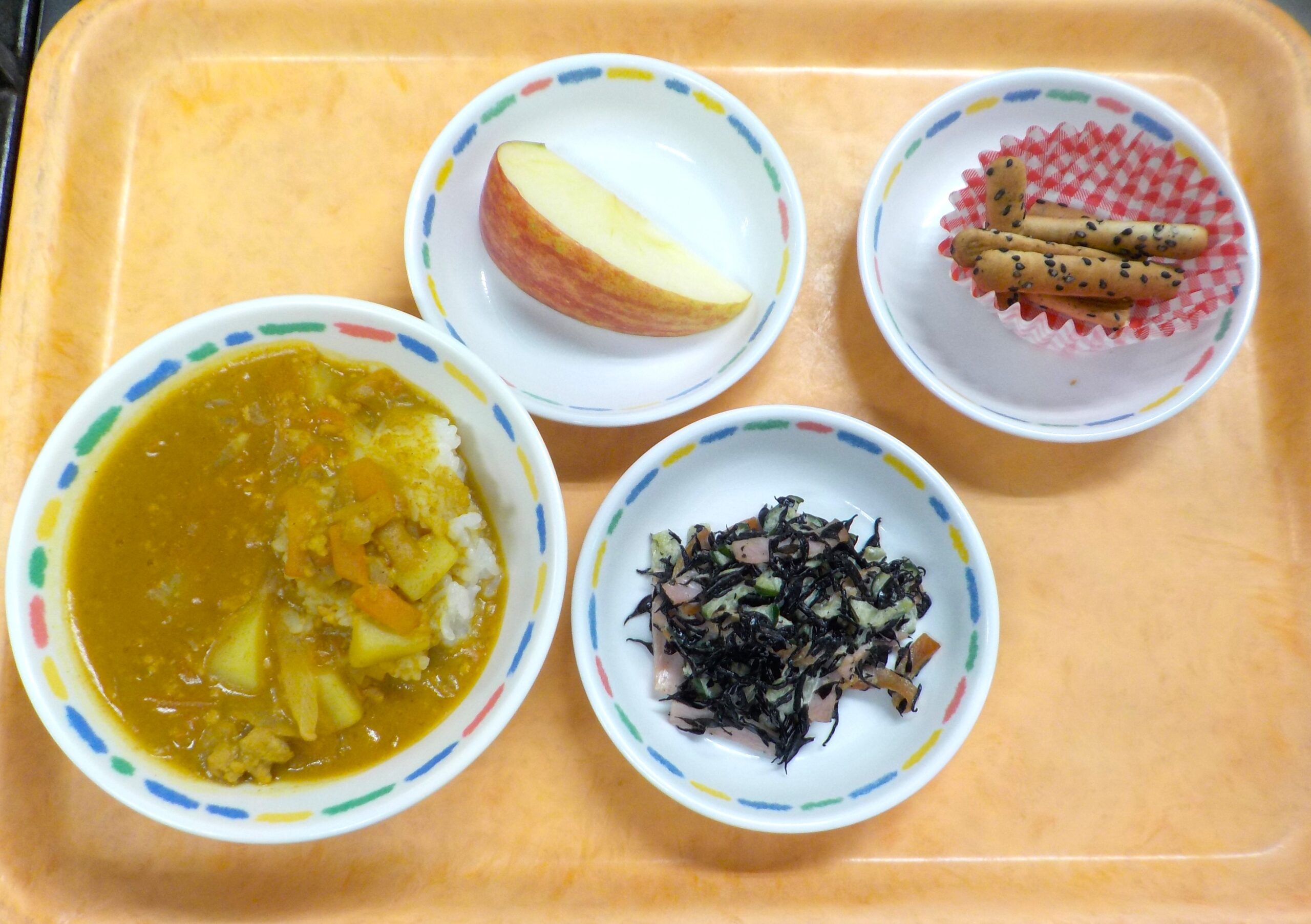 News & Topics Top News & Topics 1月8日(木)の給食 ★ 今日のメニュー ★ ポークカレー、ひじきサラダ、りんご おやつはごまスティックです。 今日も美味しく仕上がりました♪ 2026.01.08 本日の給食