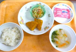 News & Topics Top News & Topics 1月13日(火)の給食 ★ 今日のメニュー ★ 麦ごはん、かぼちゃコロッケ、 ビーフン炒め、みそ汁 おやつはビスコです。 今日も美味しく仕上がりました♪ 2026.01.13 本日の給食