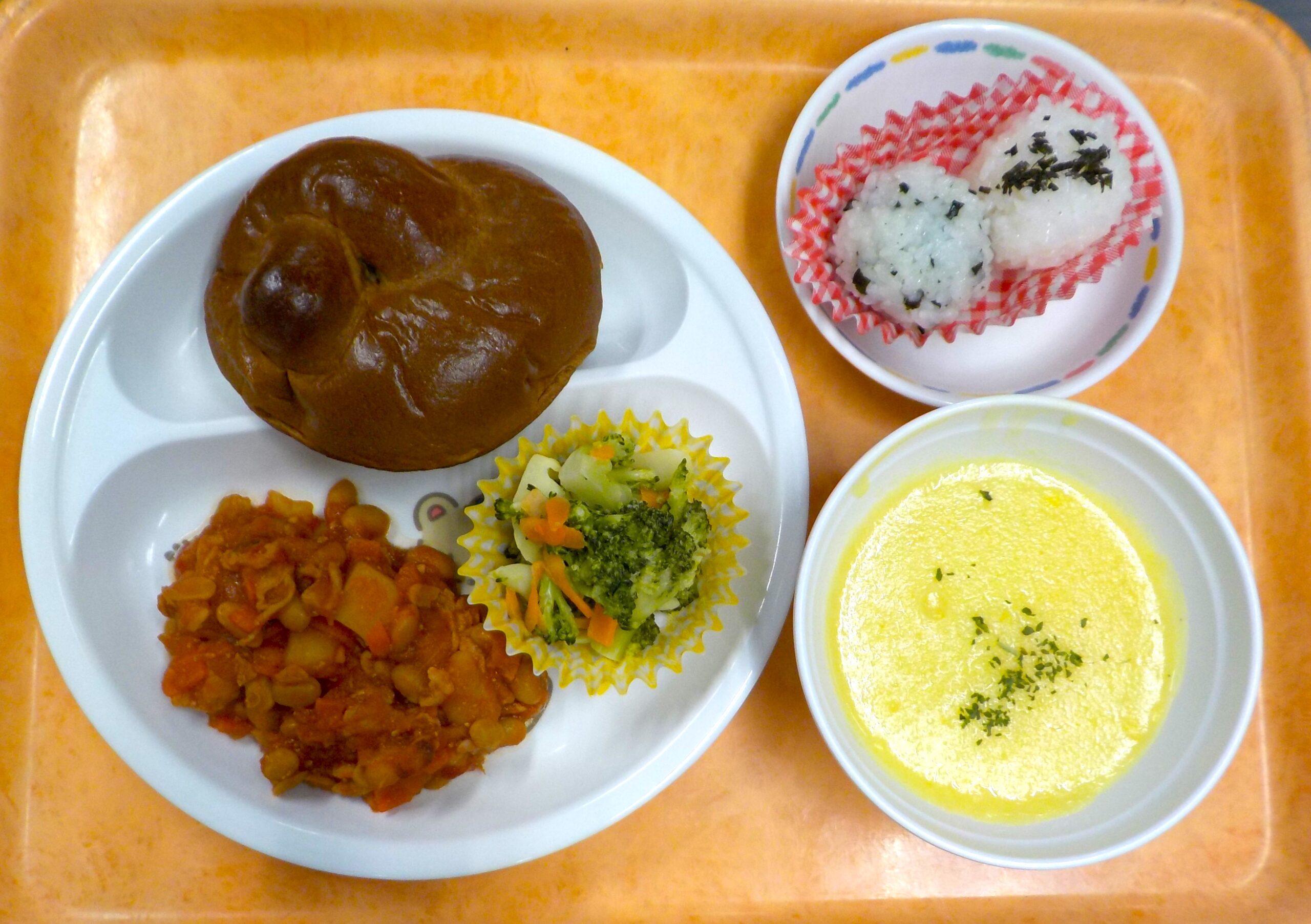 News & Topics Top News & Topics 1月21日(水)の給食 ★ 今日のメニュー ★ ロールパン(黒糖)、ポークビーンズ、 ブロッコリーサラダ、コーンスープ 手作りおやつはおにぎり(のりとわかめ)です。 今日も美味しく仕上がりました♪ 2026.01.21 未分類