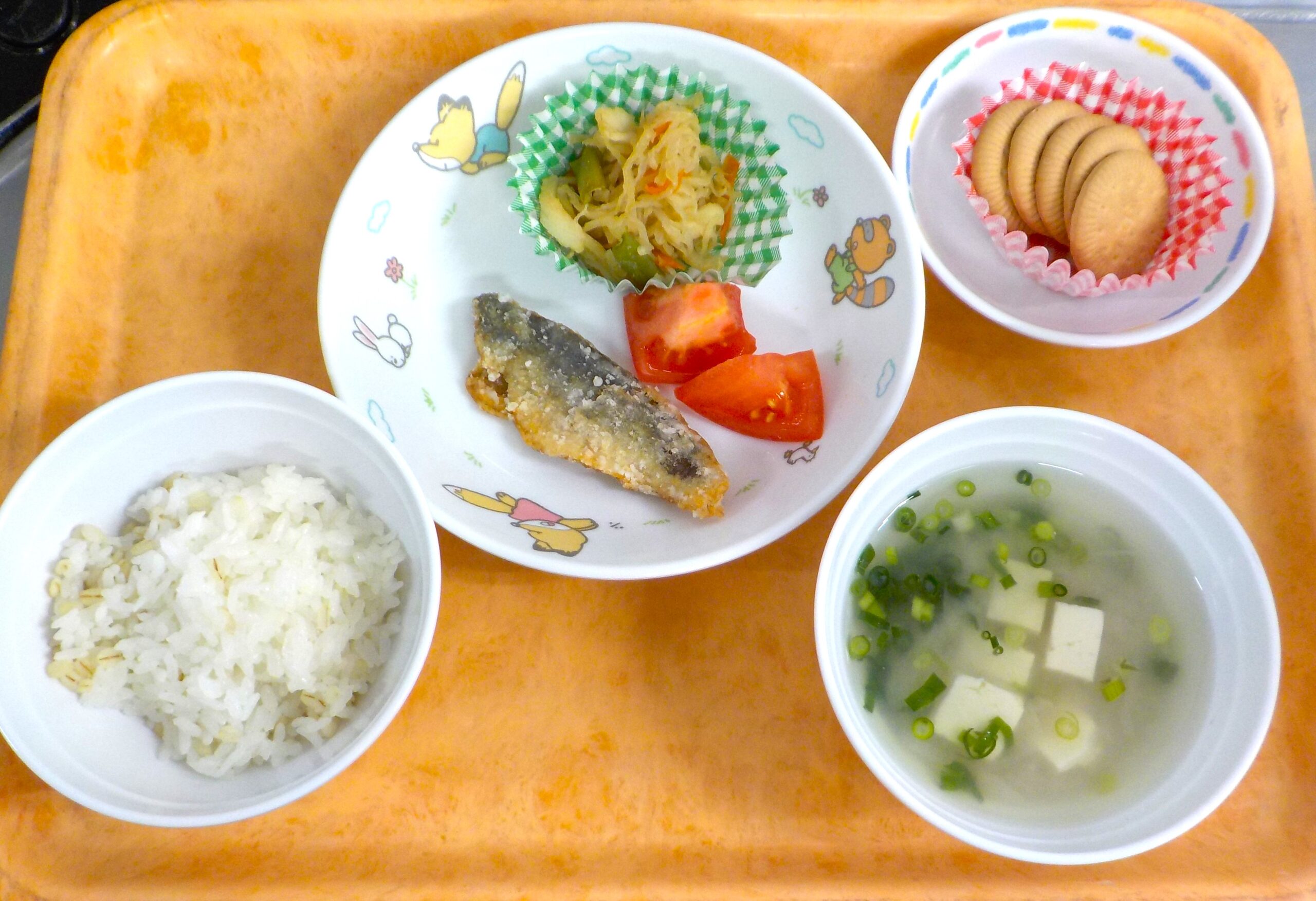 News & Topics Top News & Topics 1月22日(木)の給食 ★ 今日のメニュー ★ 麦ごはん、あじの竜田揚げ(付:トマト)、 切干大根煮、みそ汁 おやつはビスケットとりんごです。 今日も美味しく仕上がりました♪ 2026.01.22 本日の給食